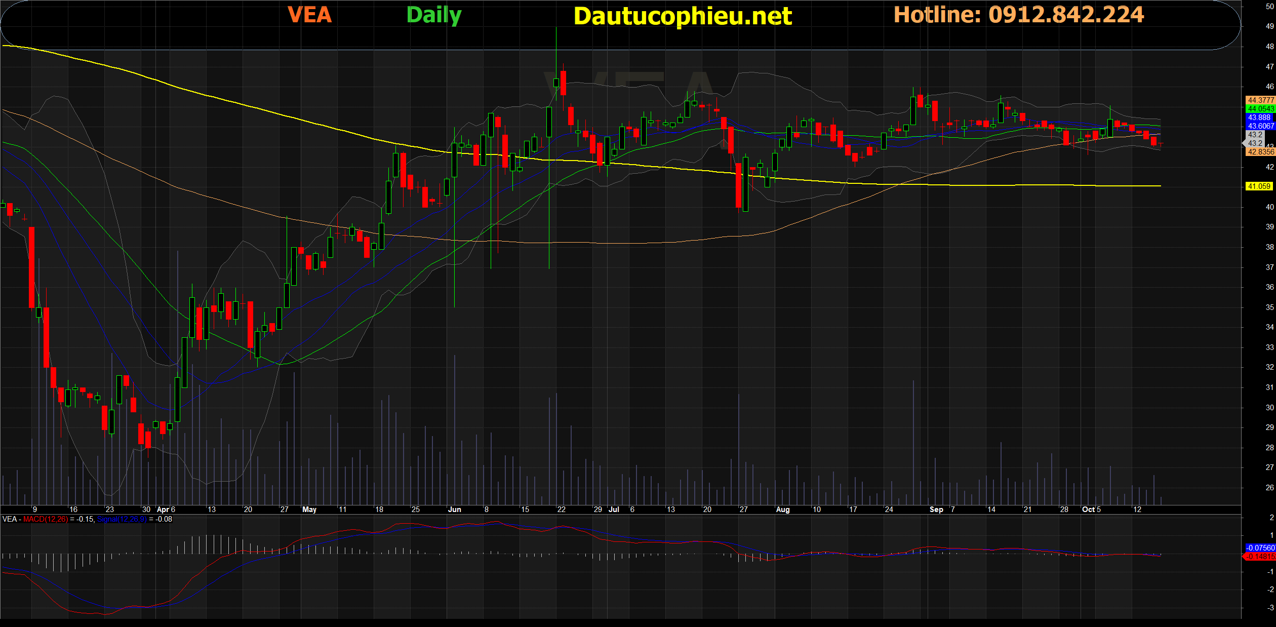 Đồ thị cổ phiếu VEA phiên giao dịch ngày 16/10/2020. Nguồn: AmiBroker
