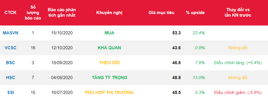 - Chúng tôi khuyến nghị Mua cổ phiếu VEA với giá mục tiêu VND 53,200 (Upside: +22.7%) dựa trên phương pháp chiết khấu dòng cổ tức DDM (g ~ 1%), tương ứng với FY20 P/E 13.4x.