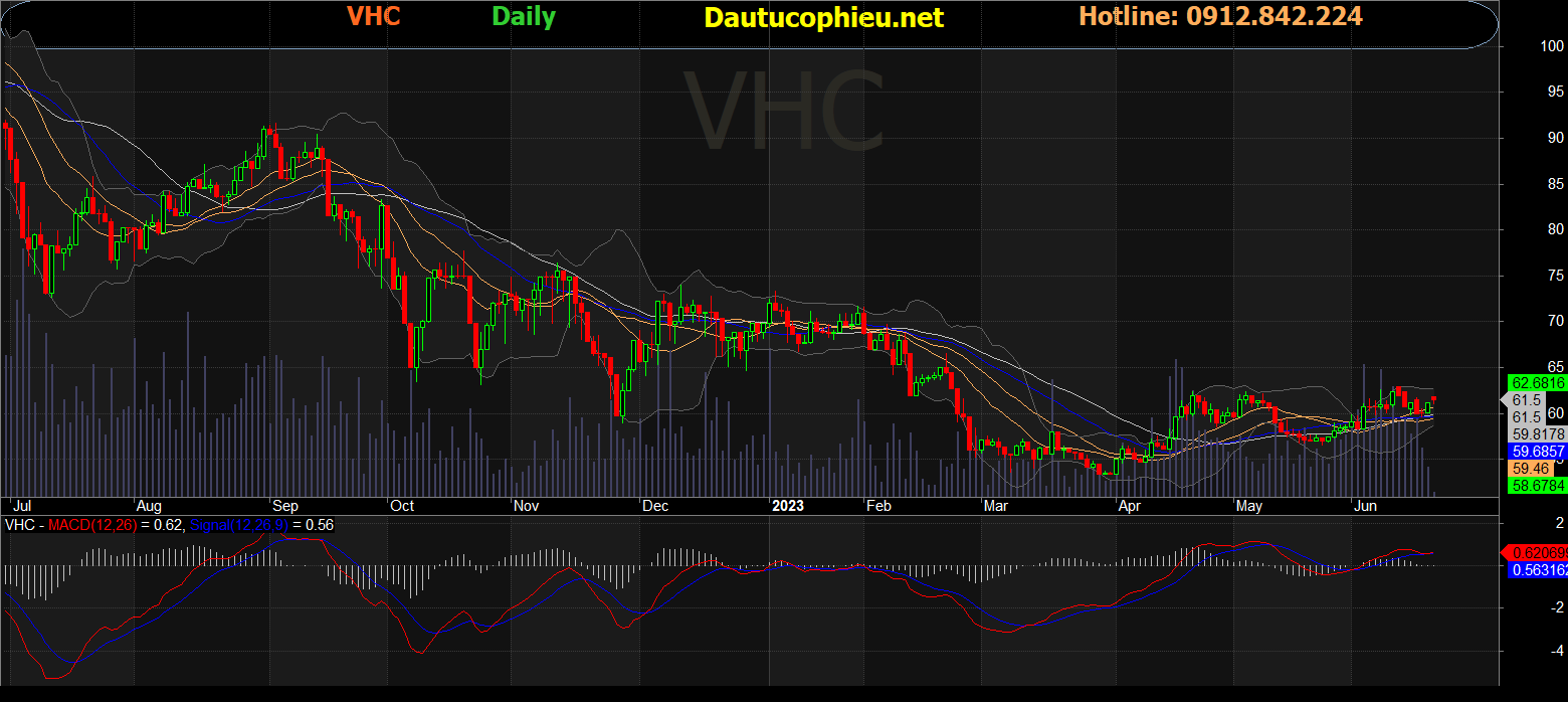Đồ thị cổ phiếu VHC phiên giao dịch ngày 21/06/2023. Nguồn: AmiBroker
