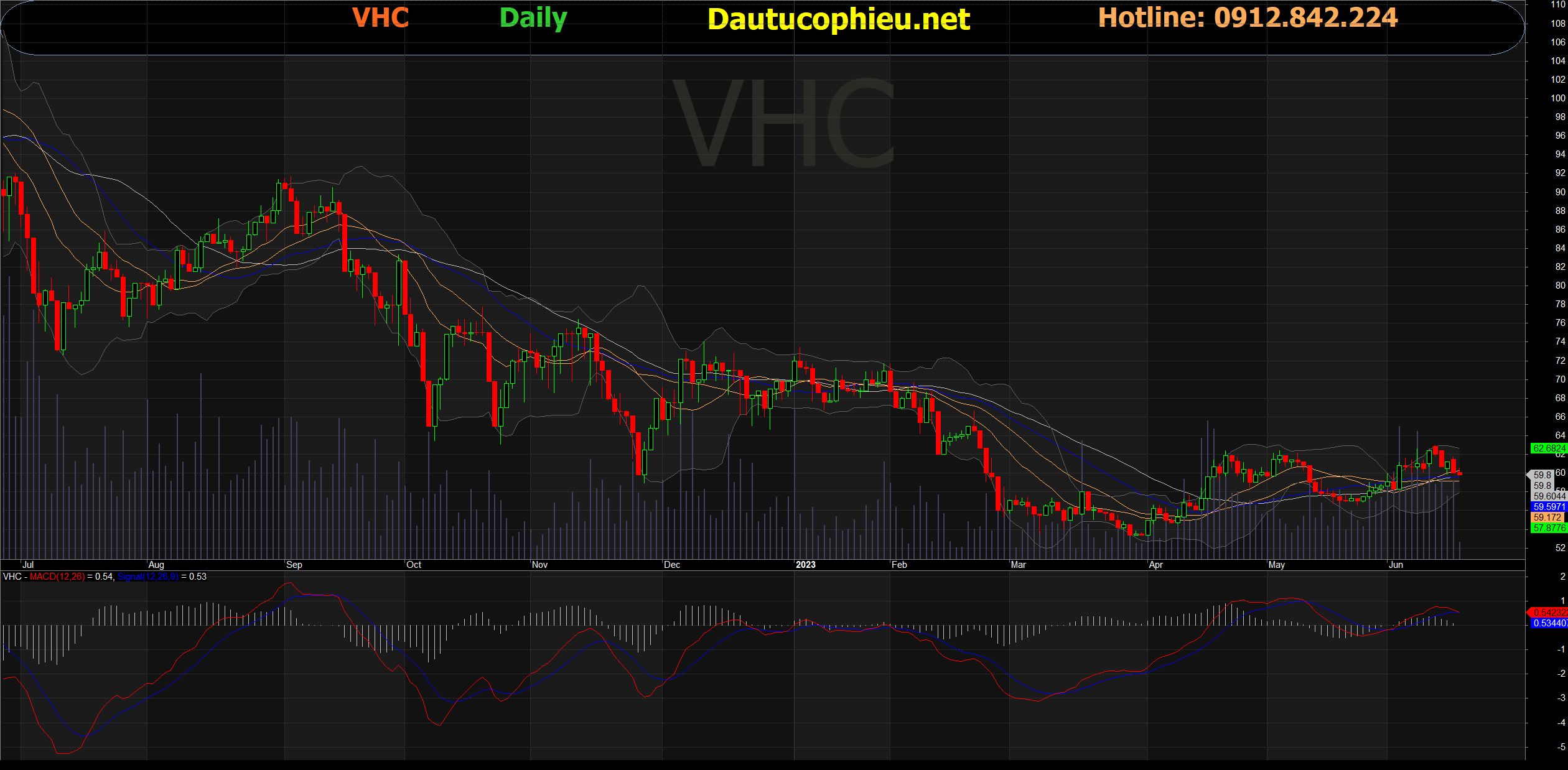 Đồ thị cổ phiếu VHC phiên giao dịch ngày 19/06/2023. Nguồn: AmiBroker