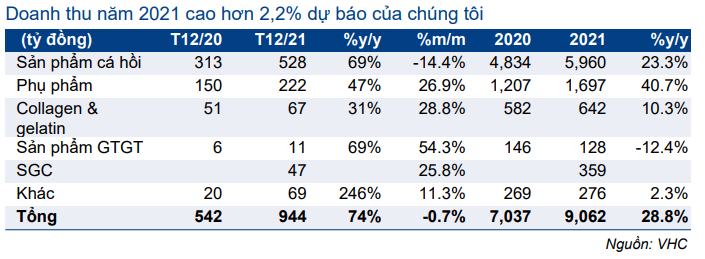 Bảng 1: Doanh thu T12/2021, VHC