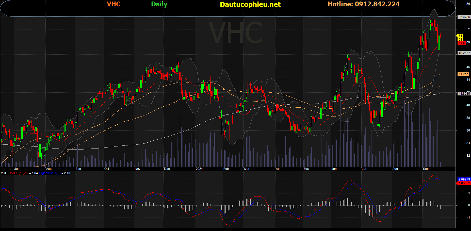 Đồ thị cổ phiếu VHC phiên giao dịch ngày 22/09/2021. Nguồn: AmiBroker
