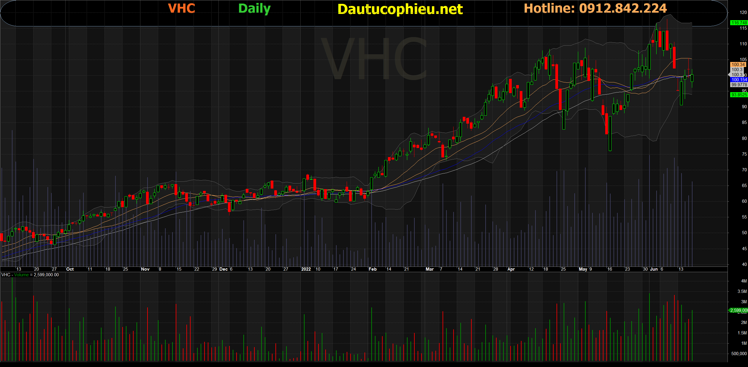 Đồ thị cổ phiếu VHC phiên giao dịch ngày 14/07/2022. Nguồn: AmiBroker