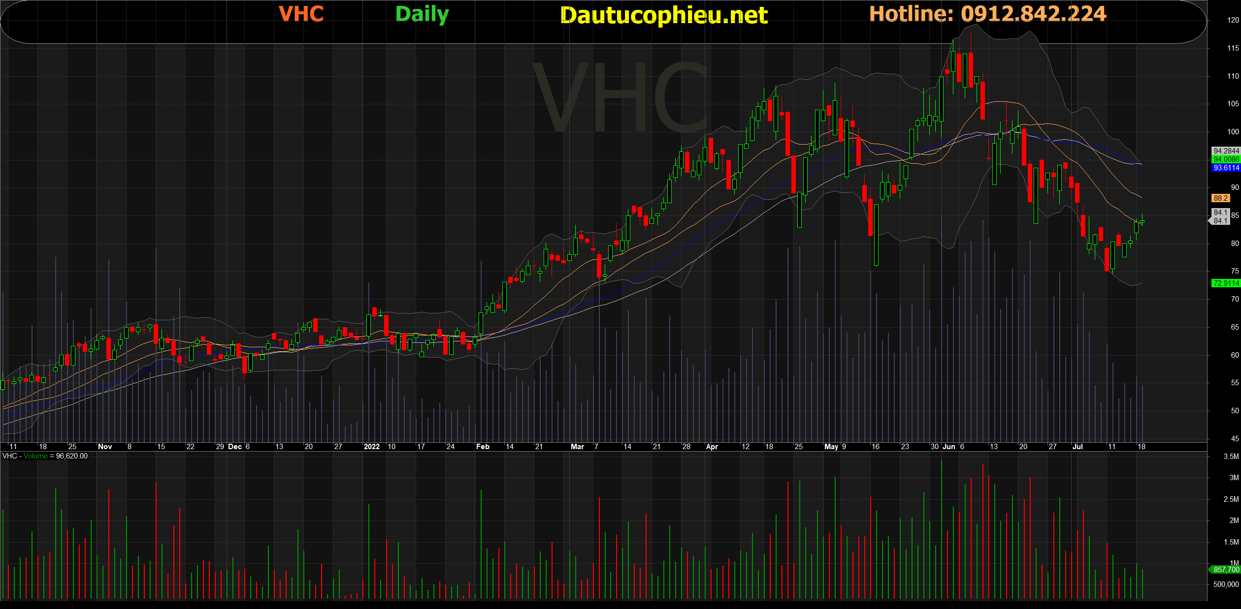 Đồ thị cổ phiếu VHC phiên giao dịch ngày 19/07/2022. Nguồn: AmiBroker