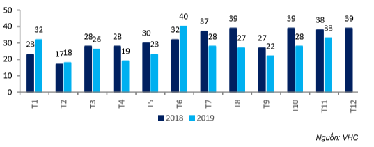 Cổ phiếu VHC đã công bố giá trị xuất khẩu tháng 11 tăng trưởng 18% so với tháng liền trước đạt 33 triệu USD. So với cùng kỳ, doanh thu xuất khẩu vẫn giảm 13.2% do doanh thu xuất khẩu cá fillet đông lạnh giảm 5%. Điều này là do giá xuất khẩu cá tra giảm đáng kể (giảm 39,4% so với cùng kỳ).