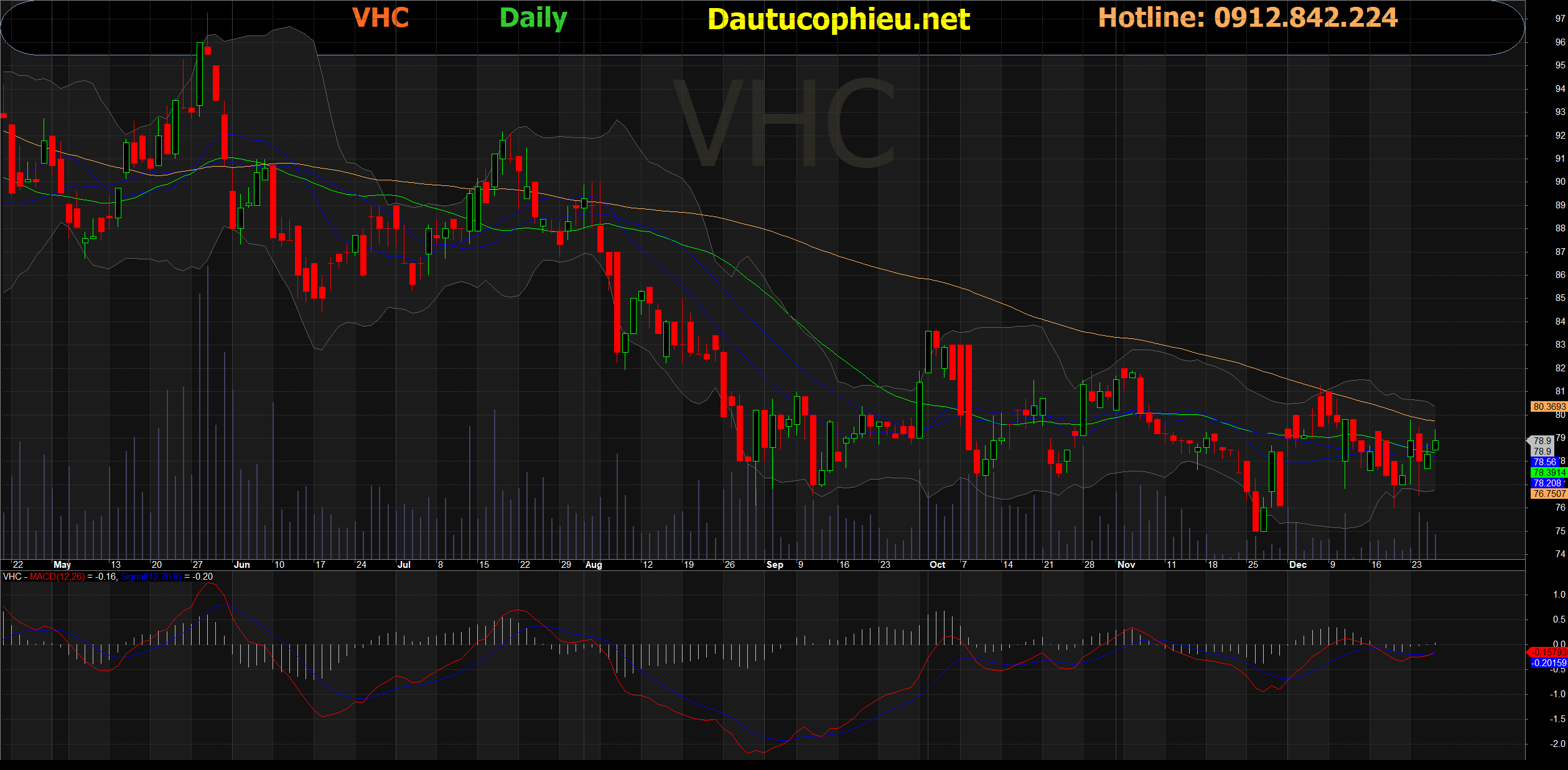 Đồ thị cổ phiếu VHC phiên giao dịch ngày 26/12/2019. Nguồn: AmiBroker.