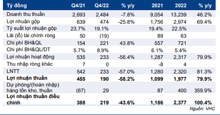 Bảng 1: KQKD Q4/2022 và năm 2022, VHC