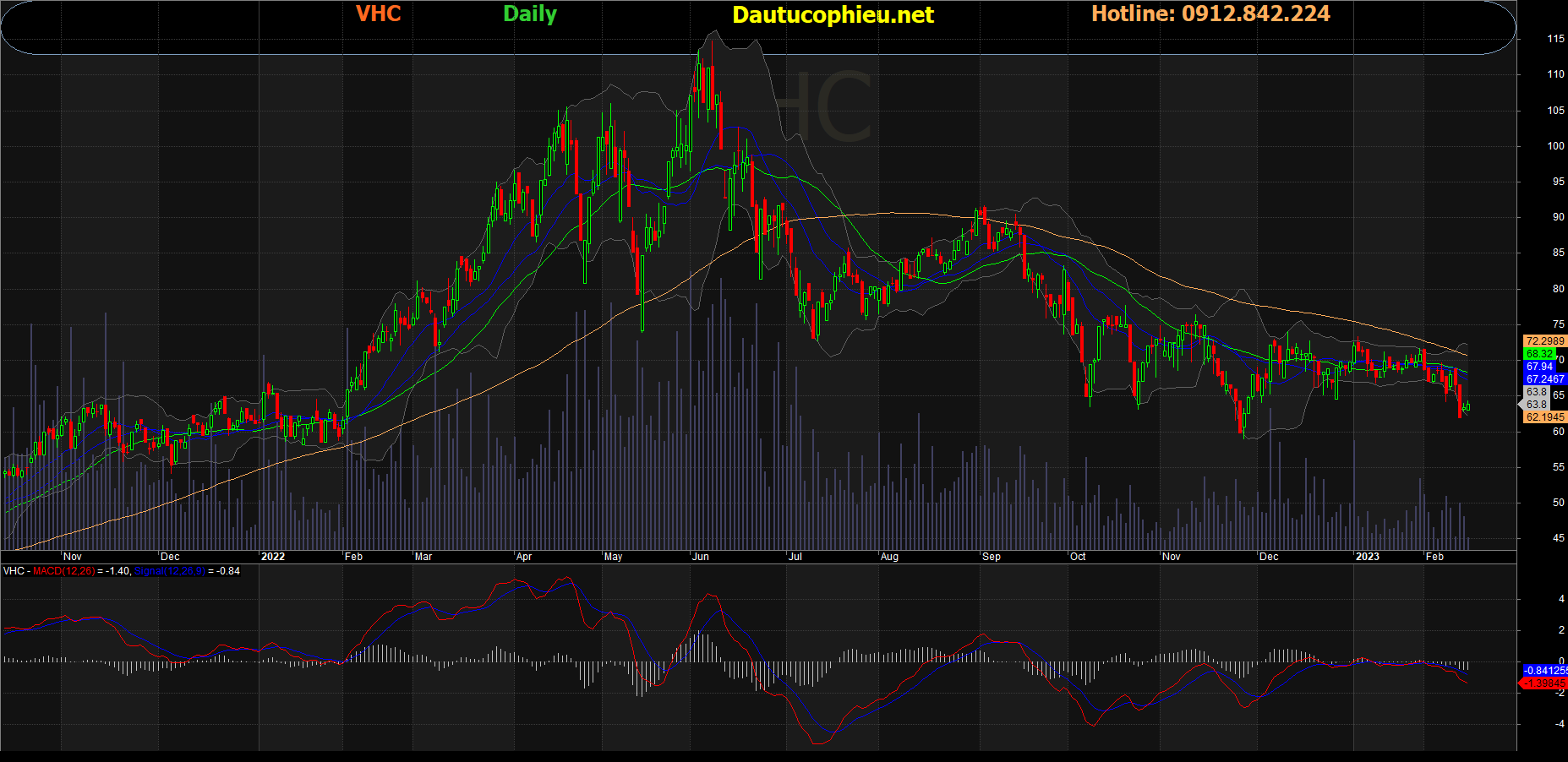 Đồ thị cổ phiếu VHC phiên giao dịch ngày 15/02/2023. Nguồn: AmiBroker