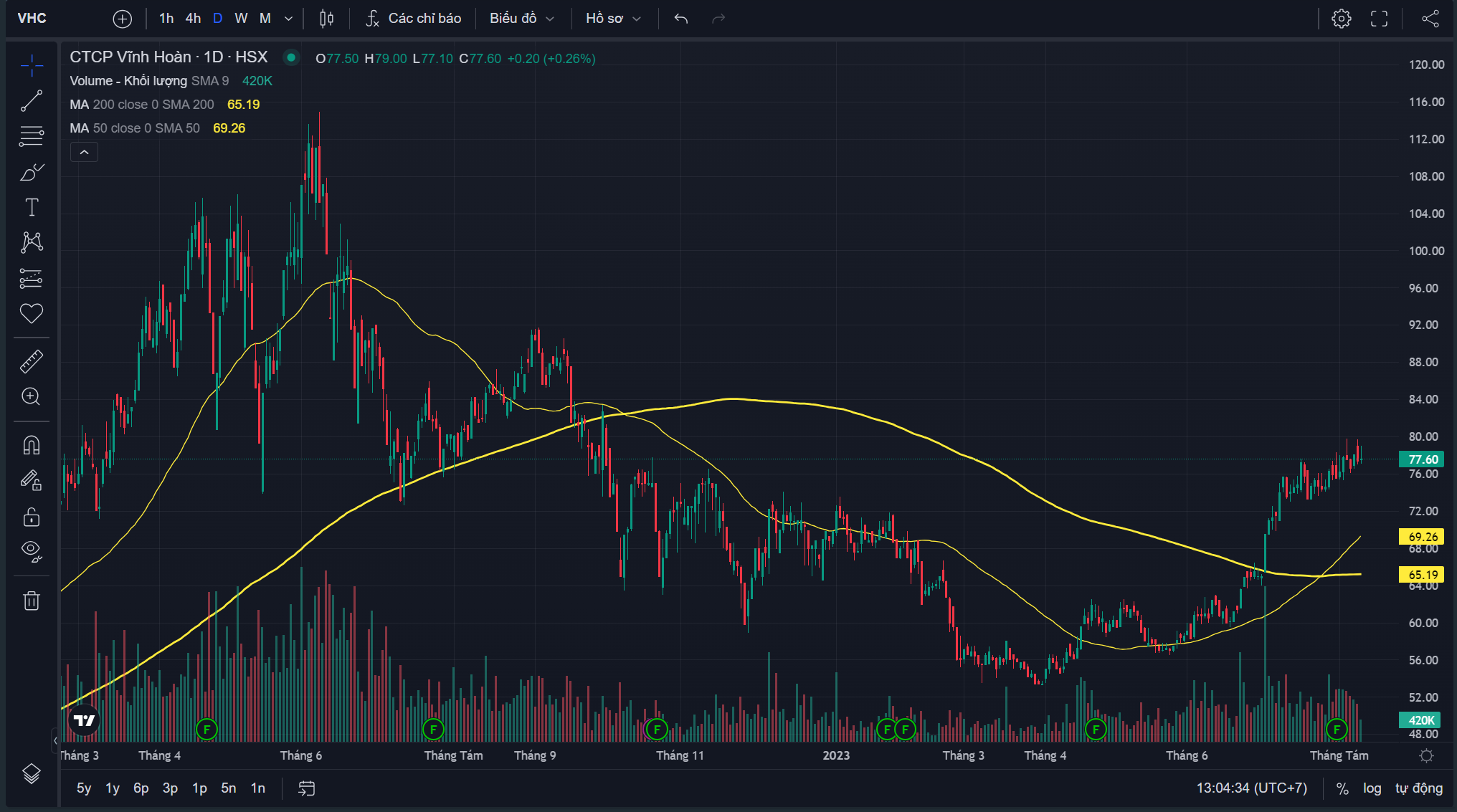 Đồ thị cổ phiếu VHC phiên giao dịch ngày 09/08/2023. Nguồn: Tradingview