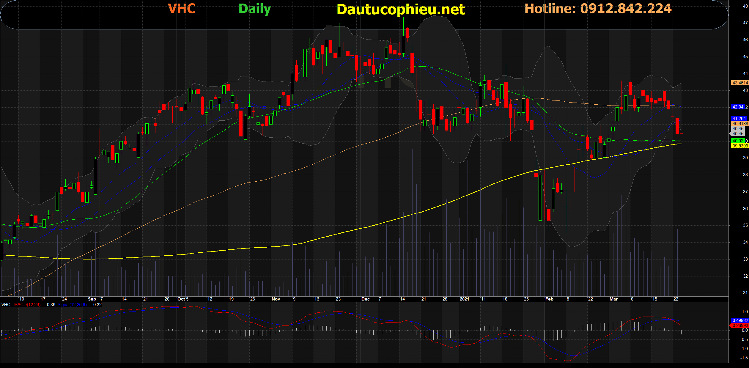 Đồ thị cổ phiếu VHC phiên giao dịch ngày 24/03/2021. Nguồn: AmiBroker