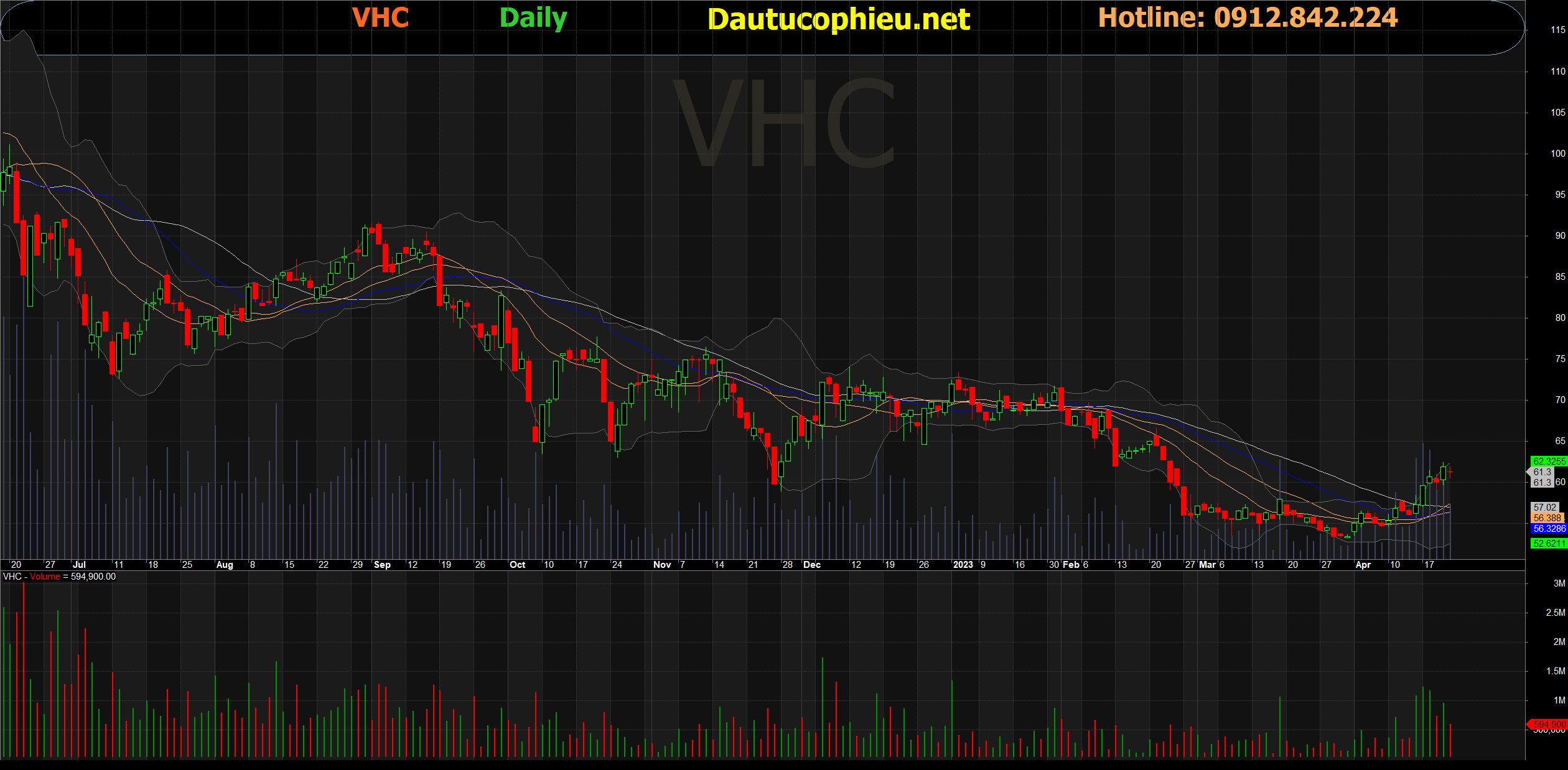 Đồ thị cổ phiếu VHC phiên giao dịch ngày 25/04/2023. Nguồn: AmiBroker