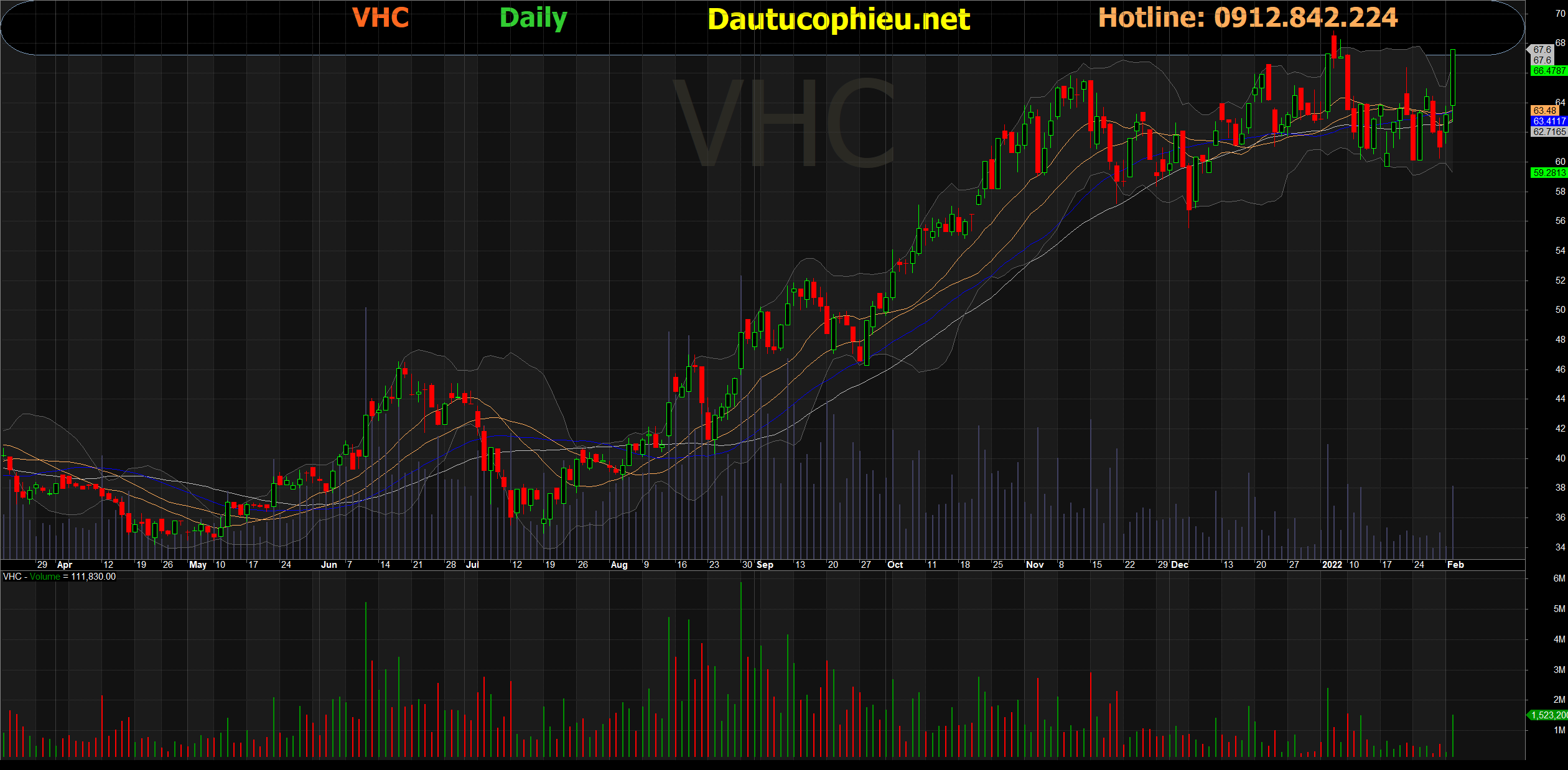 Đồ thị cổ phiếu VHC phiên giao dịch ngày 08/02/2022. Nguồn: AmiBroker