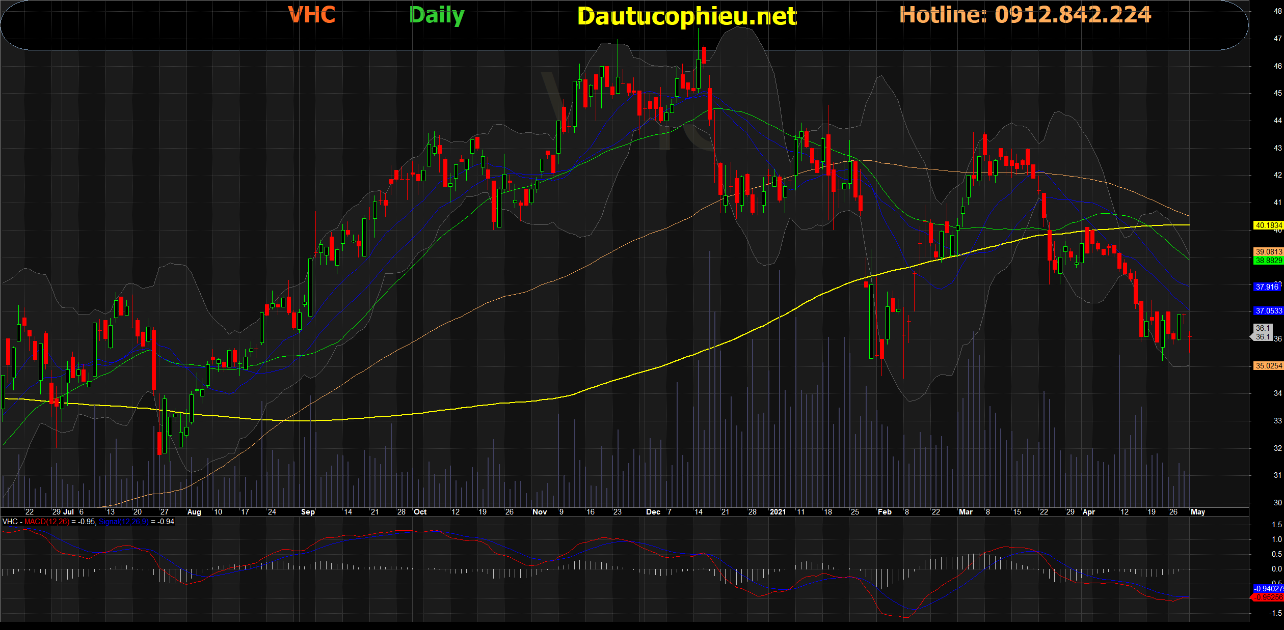 Đồ thị cổ phiếu VHC phiên giao dịch ngày 04/05/2021. Nguồn : AmiBroker