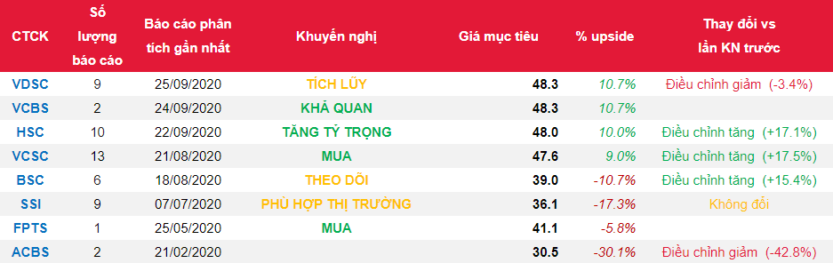 - Quan điểm và Định giá Xuất khẩu cá tra sang Mỹ, thị trường xuất khẩu lớn nhất của công ty, đã có dấu hiệu phục hồi tốt hơn các thị trường lớn khác về cả giá bán và sản lượng. Chúng tôi kỳ vọng Mỹ sẽ là động lực tăng trưởng chính của phân khúc cá tra trong những tháng còn lại của năm 2020 và năm 2021. Trạng thái “bình thường mới” và những lo ngại của người dân về các vấn đề sức khỏe bất ngờ như COVID-19 sẽ tiếp tục thúc đẩy tăng trưởng cho mảng cá tra giá trị gia tăng và collagen. Chúng tôi lạc quan hơn về khả năng công ty ổn định giá bán cá tra vào năm 2021 trong bối cảnh kinh tế toàn cầu khó khăn. Xem xét tất cả các yếu tố trên, chúng tôi điều chỉnh tăng 21% giá mục tiêu cho VHC từ 39.700 đồng/CP lên 48.300 đồng/CP. Cùng với mức cổ tức tiền mặt trong 12 tháng tới 2.000 đồng/CP, tổng mức sinh lời đạt 18% dựa trên giá đóng cửa 42.800 đồng/CP tại ngày 24/09/2020. Do đó, chúng tôi khuyến nghị TÍCH LŨY đối với cổ phiếu VHC.