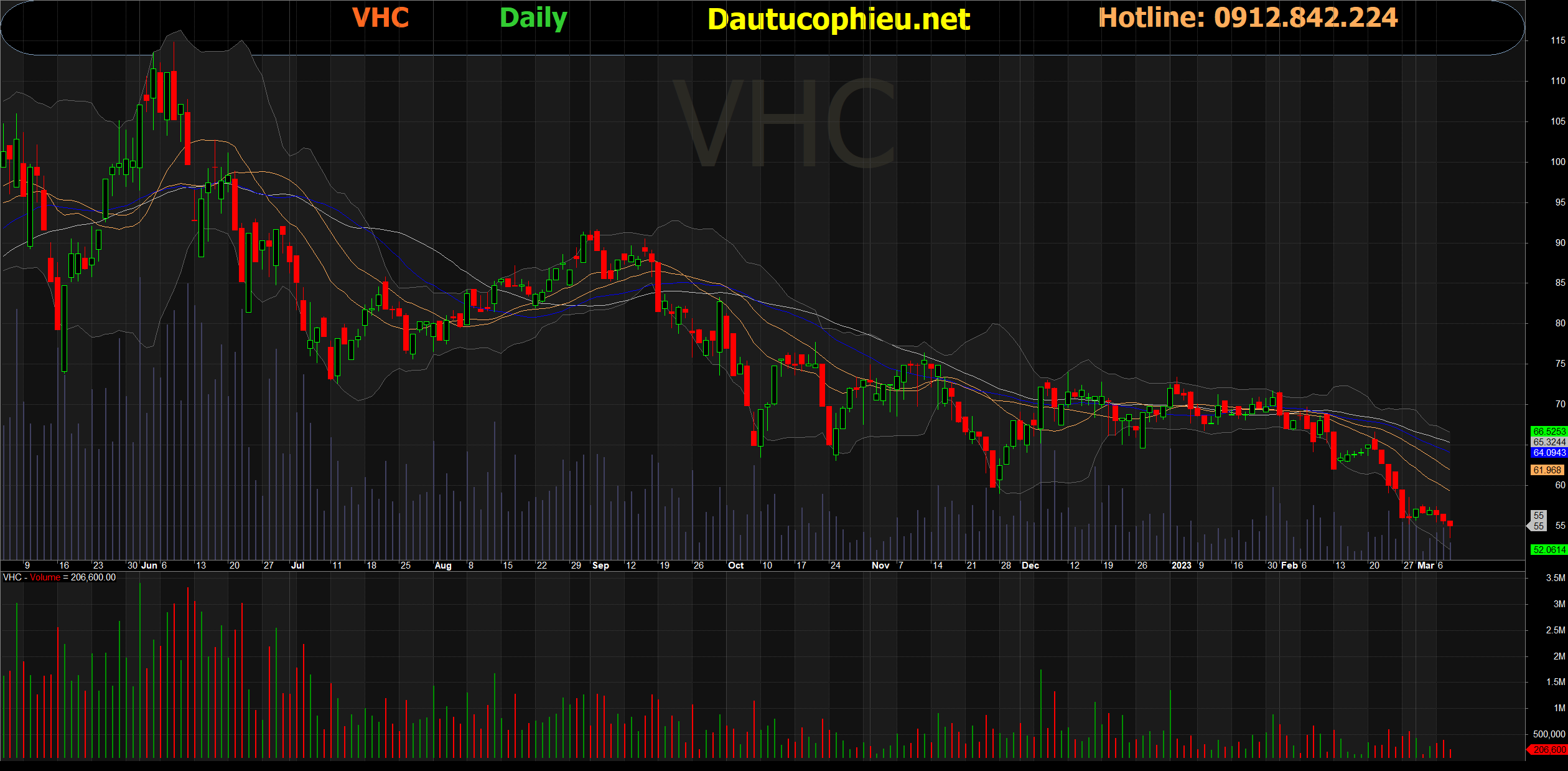 Đồ thị cổ phiếu VHC phiên giao dịch ngày 08/03/2023. Nguồn: AmiBroker