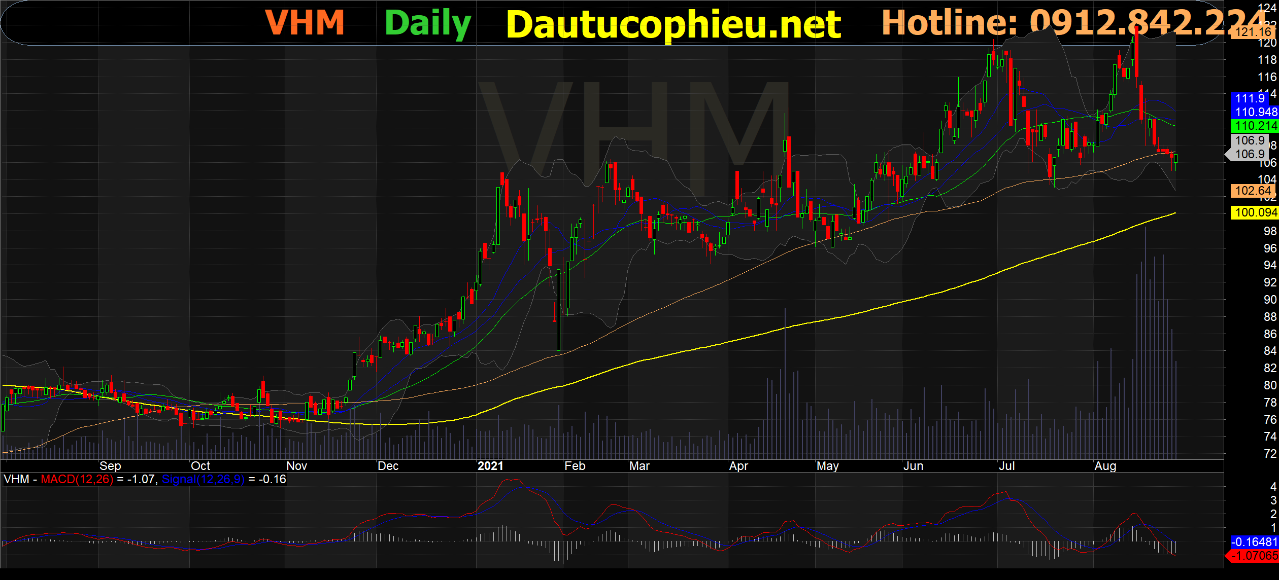Đồ thị cổ phiếu VHM phiên giao dịch ngày 27/08/2021. Nguồn: AmiBroker