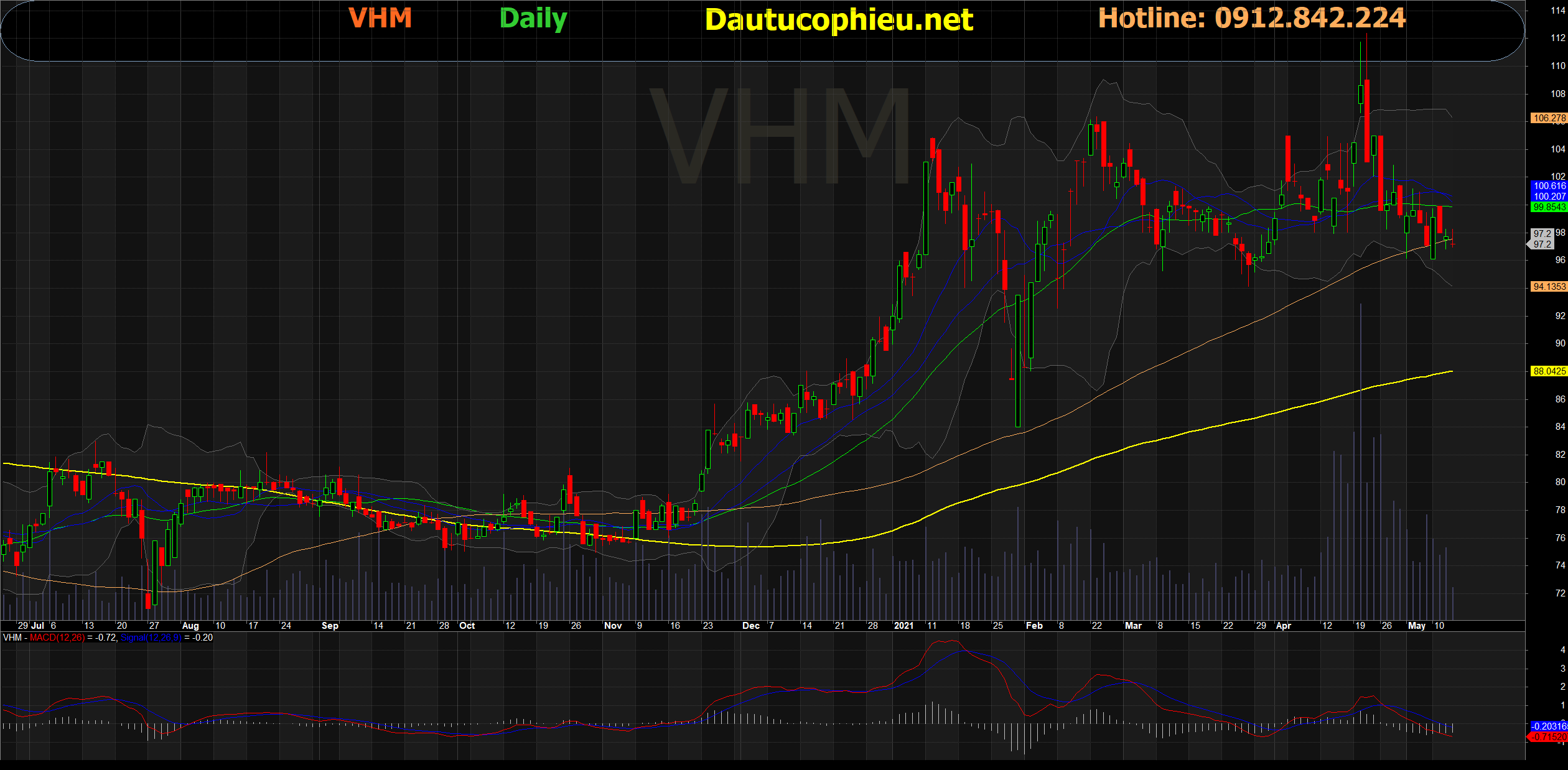 Đồ thị cổ phiếu VHM phiên giao dịch ngày 13/05/2021. Nguồn: AmiBroker