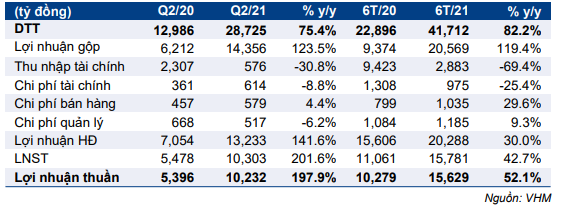 Bảng 1: KQKD Q2/2021, VHM