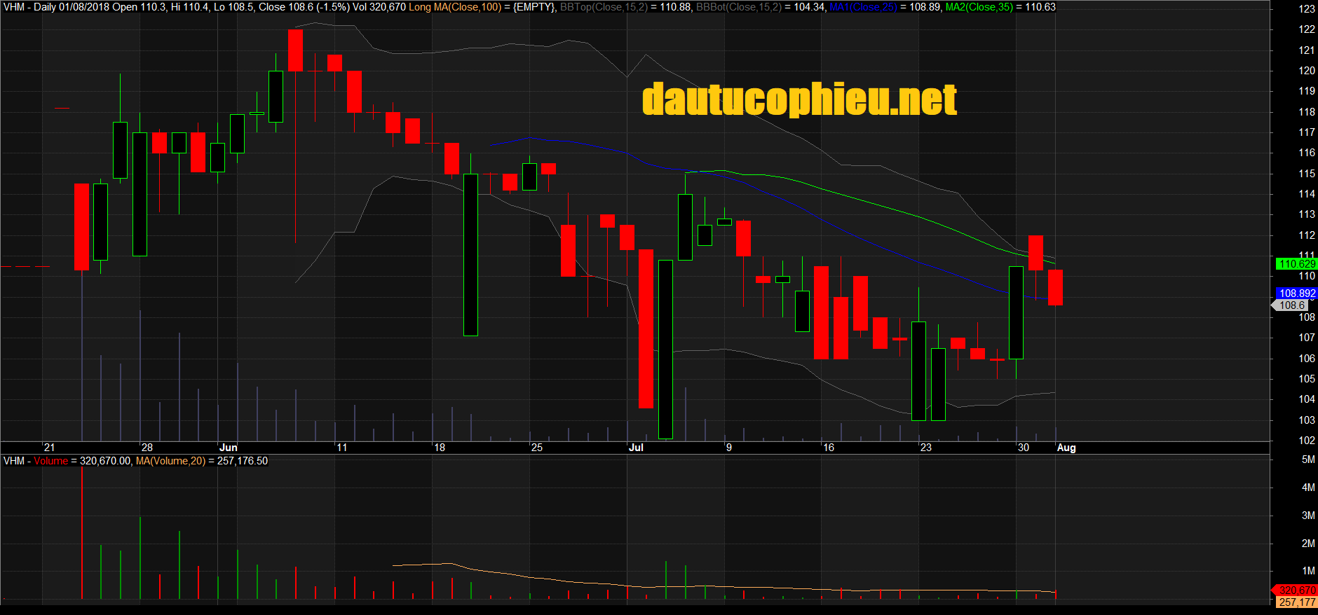 Đồ thị cổ phiếu VHM phiên giao dịch ngày 01/08/2018. Nguồn: AmiBroker