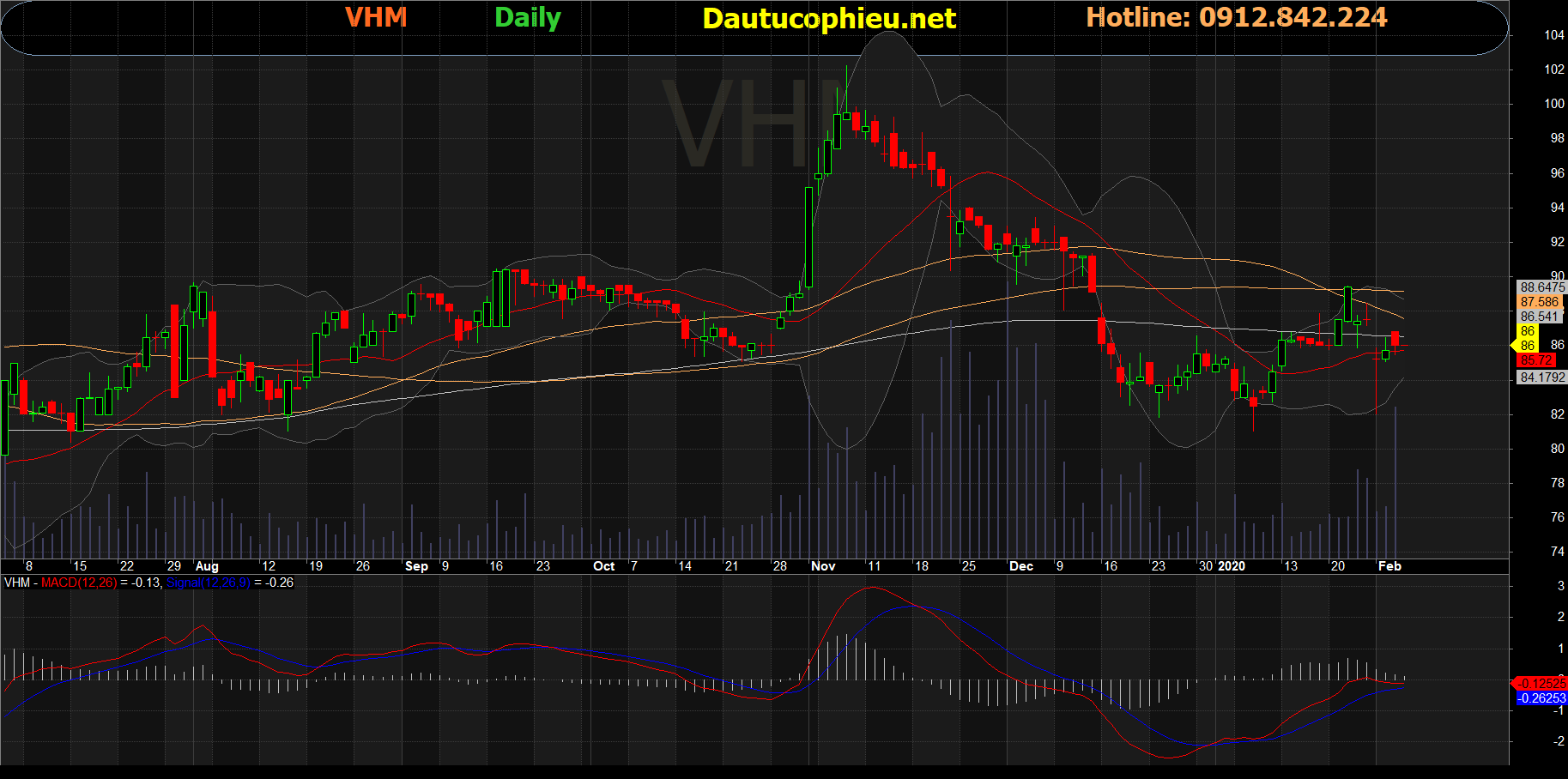 Đồ thị cổ phiếu VHM phiên giao dịch ngày 05/02/2020. Nguồn: AmiBroker.