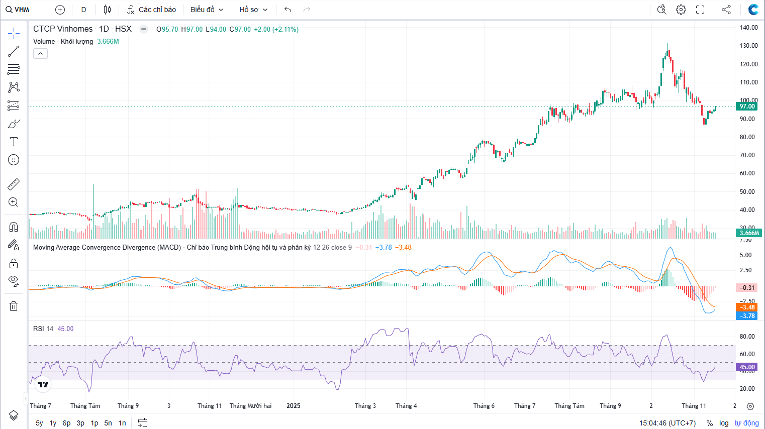 Trong khi đó, VHM có kế hoạch mở bán các căn hộ mới cho khách hàng cá nhân trong những tháng còn lại của năm 2025. Tính đến cuối Q3/2025, tổng doanh số bán nhà chưa ghi nhận doanh thu đạt 223,9 nghìn tỷ đồng, tăng 62% so với quý trước và tăng 138% tính từ đầu năm. Kết quả này được kỳ vọng sẽ chuyển thành lợi nhuận tích cực hơn khi VHM tiến hành bàn giao nhà và ghi nhận doanh thu và lợi nhuận.