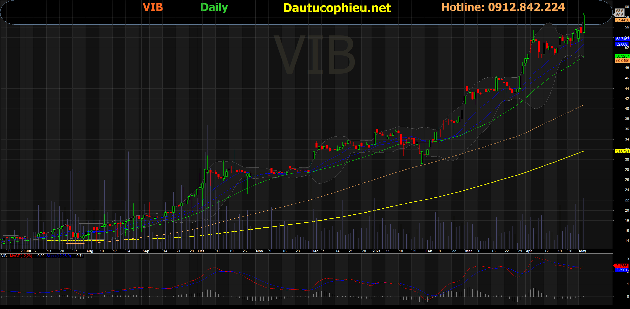 Đồ thị cổ phiếu VIB phiên giao dịch ngày 06/05/2021. Nguồn: AmiBroker