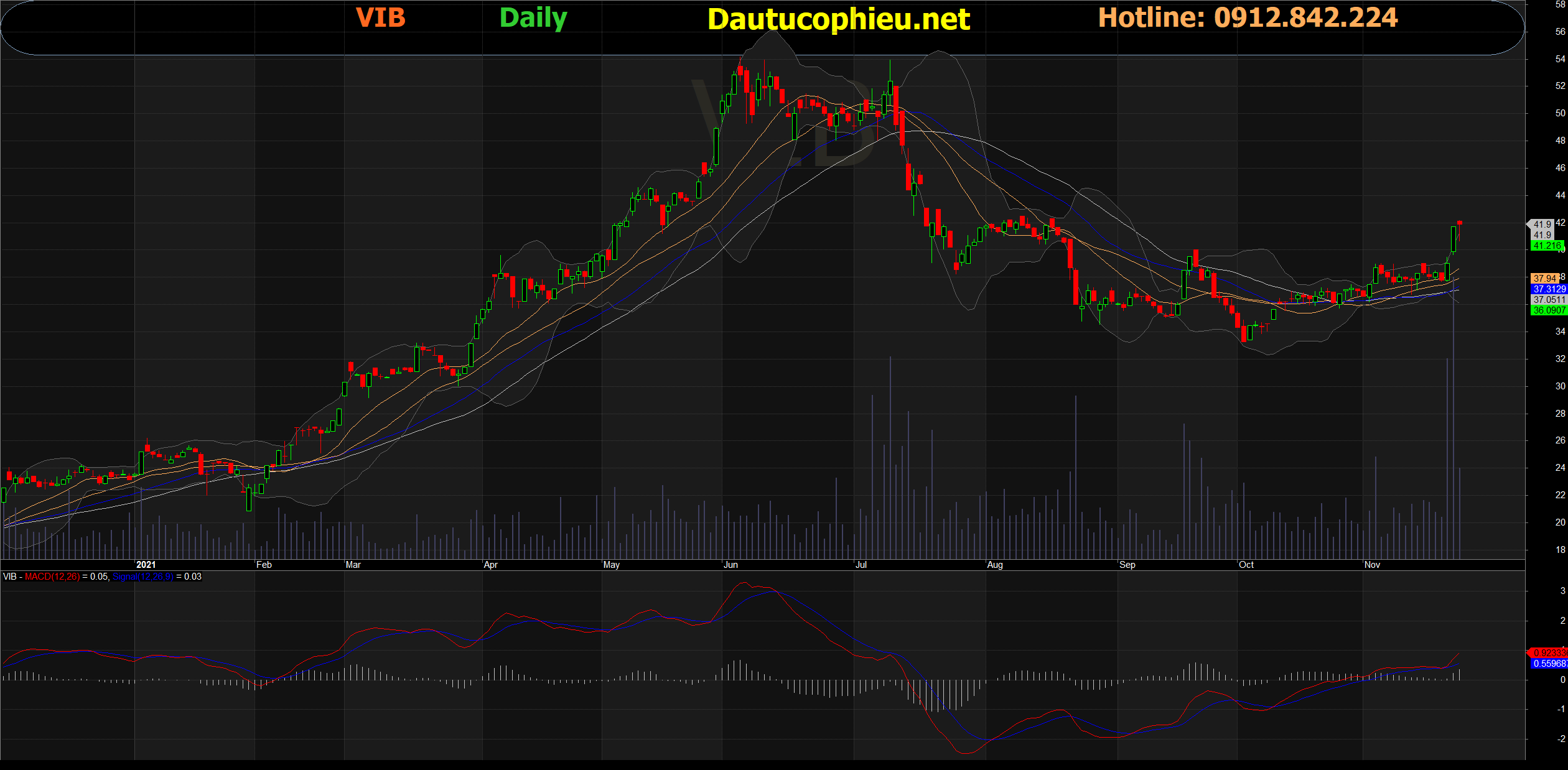 Đồ thị cổ phiếu VIB phiên giao dịch ngày 23/11/2021. Nguồn: AmiBroker