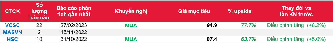 - Chúng tôi duy trì khuyến nghị MUA đối với Tập đoàn Vingroup (Cổ phiếu VIC) và tăng giá mục tiêu thêm 6,2% lên 94.900 đồng/cổ phiếu, chủ yếu nhờ định giá cao hơn lần lượt 18% và 7% đối với mảng Công nghiệp và Cho thuê bán lẻ, cũng như số dư nợ ròng thấp hơn vào cuối năm 2022. Chúng tôi duy trì quan điểm tích cực về việc Vingroup sẽ hưởng lợi mạnh mẽ từ tầng lớp thu nhập trung bình cao vốn đang gia tăng tại Việt Nam thông qua các công ty BĐS như Vinhomes (VHM), Vincom Retail (VRE) và Vinpearl.