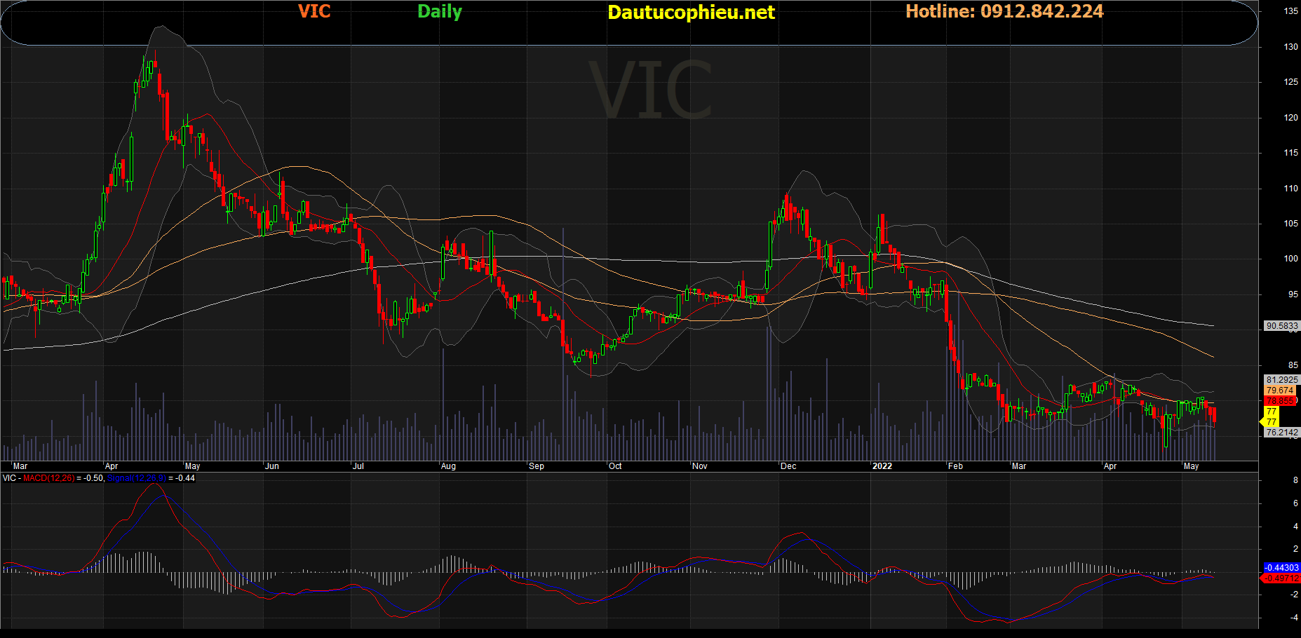 Đồ thị cổ phiếu VIC phiên giao dịch ngày 16/05/2022. Nguồn: AmiBroker