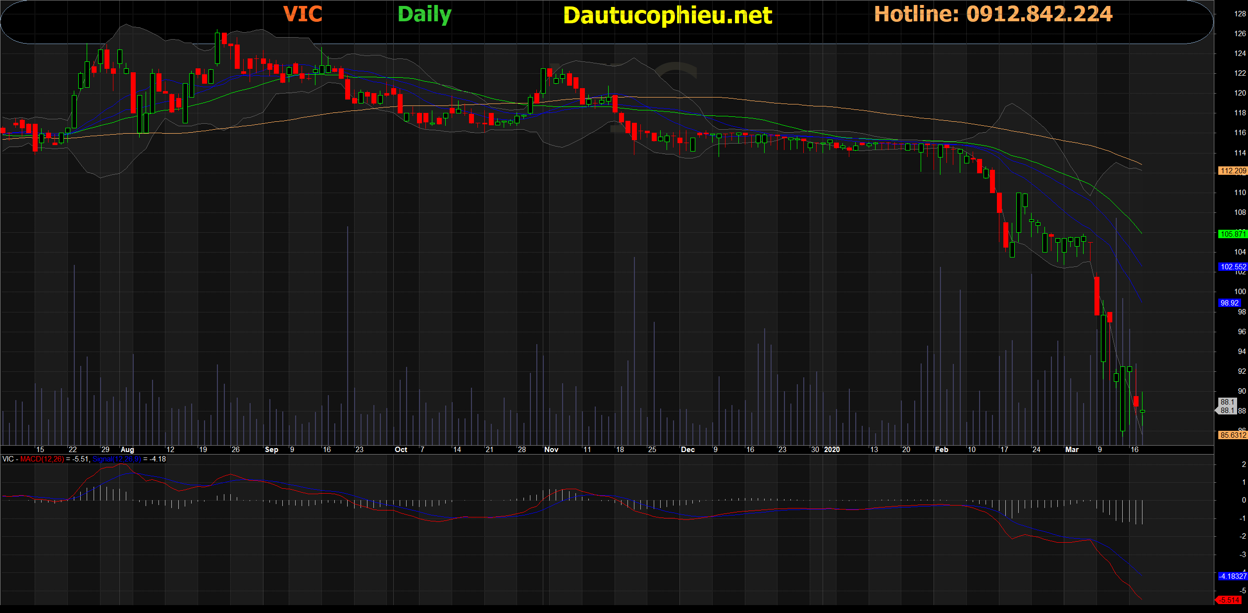 Đồ thị cổ phiếu VIC phiên giao dịch ngày 18/03/2020. Nguồn: AmiBroker.