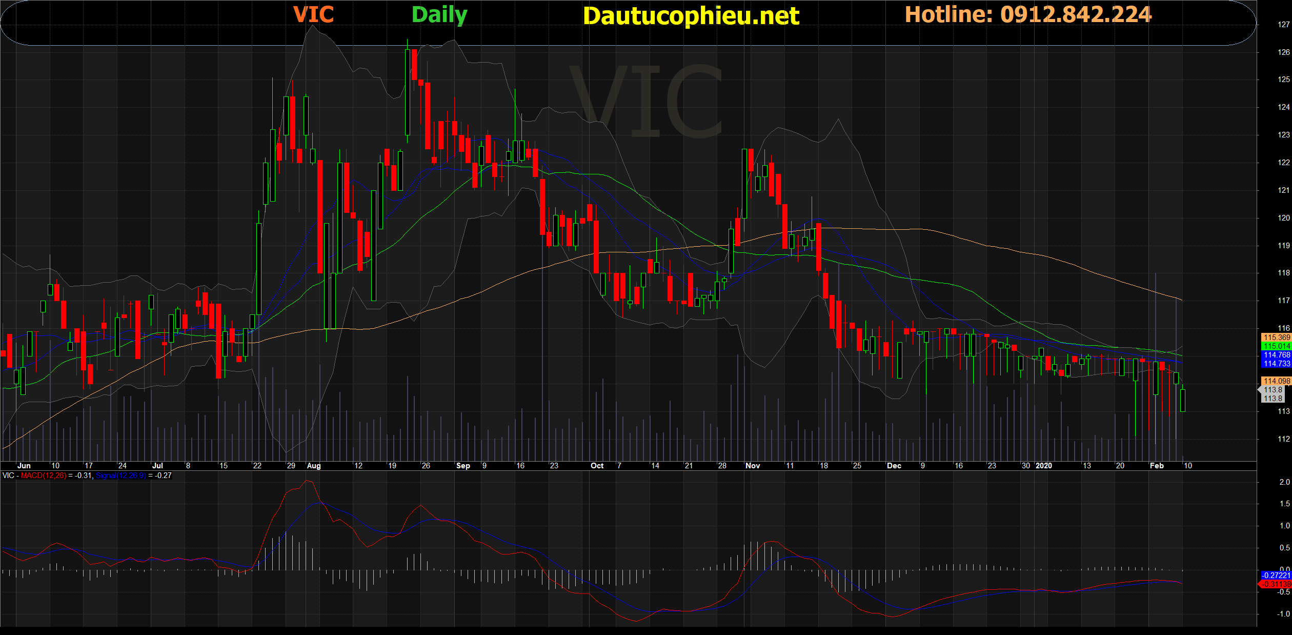 Đồ thị cổ phiếu VIC phiên giao dịch ngày 10/02/2020. Nguồn: Amibroker.