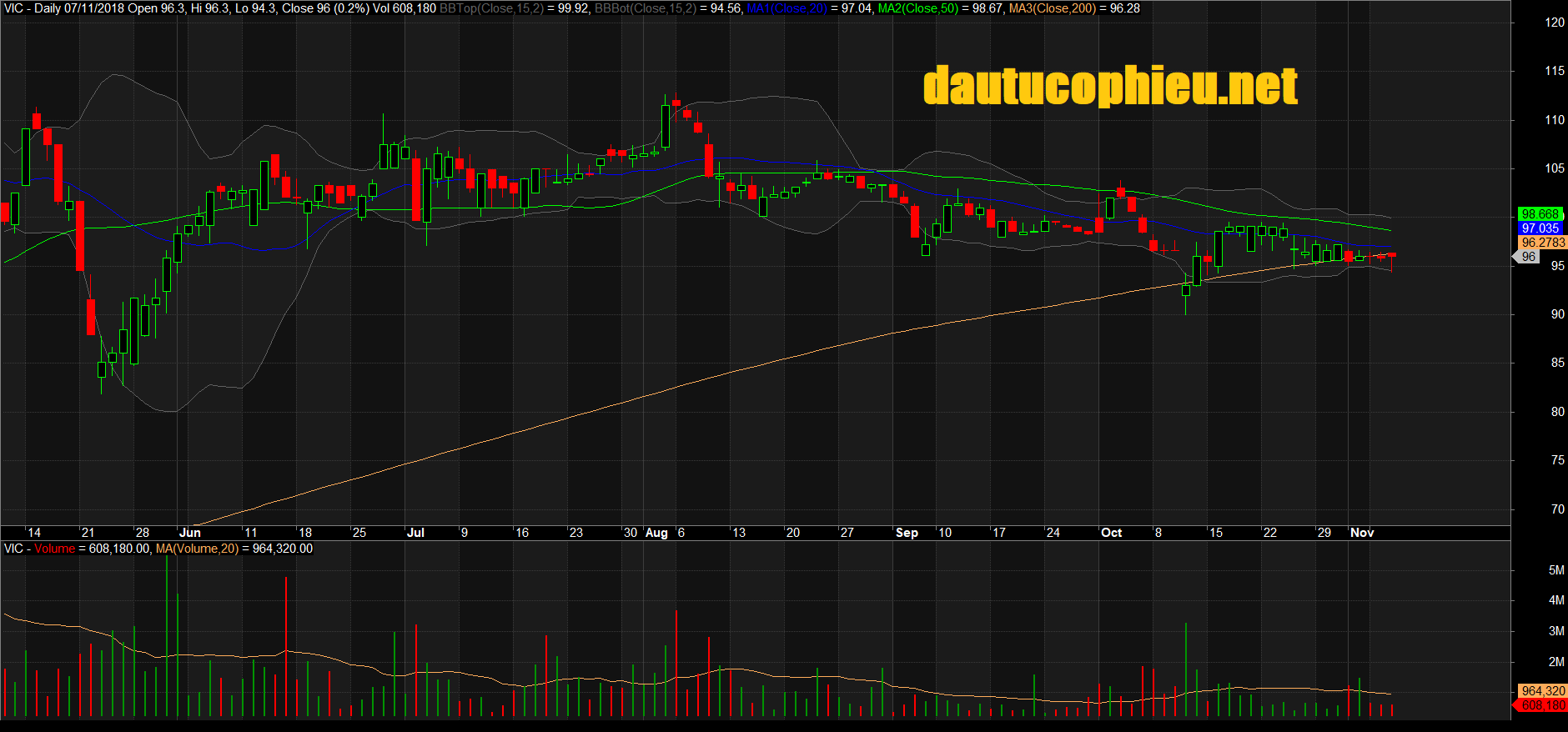 Đồ thị cổ phiếu VIC phiên giao dịch ngày 07/11/2018. Nguồn: AmiBroker