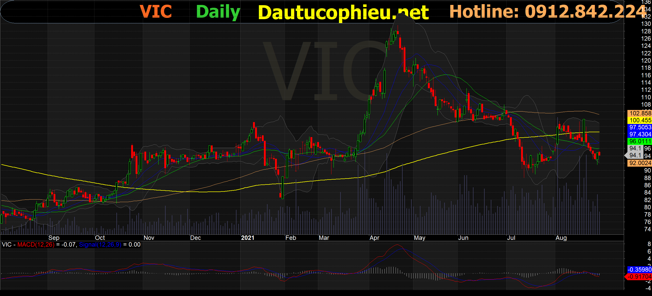Đồ thị cổ phiếu VIC phiên giao dịch ngày 30/08/2021. Nguồn: AmiBroker