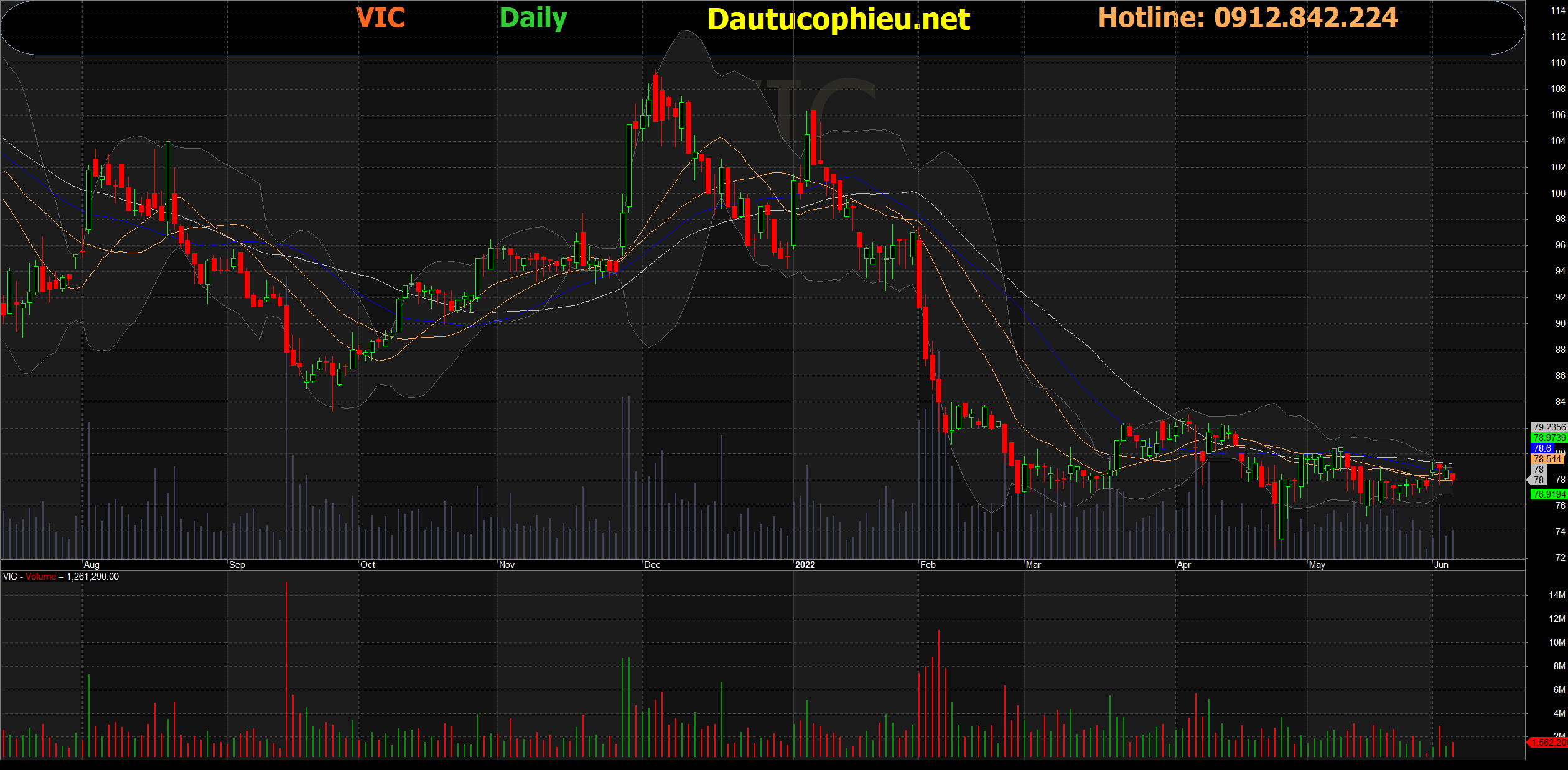 Đồ thị cổ phiếu VIC phiên giao dịch ngày 07/05/2022. Nguồn: AmiBroker