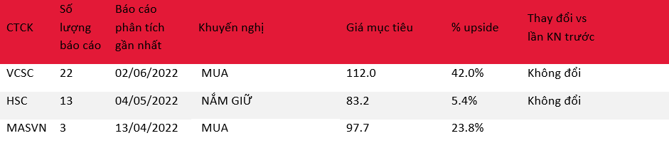 - Chúng tôi giữ nguyên khuyến nghị MUA đối với Tập đoàn Vingroup (Cổ phiếu VIC) và giá mục tiêu là 112.000 đồng/cổ phiếu do cập nhật mô hình định giá đến giữa năm 2023, thay đổi phương pháp định giá cho mảng công nghiệp sang phương pháp giá trị sổ sách so với EV/doanh thu trước đây và bị ảnh hưởng bởi nợ ròng cao hơn tính đến cuối quý 1/2022.