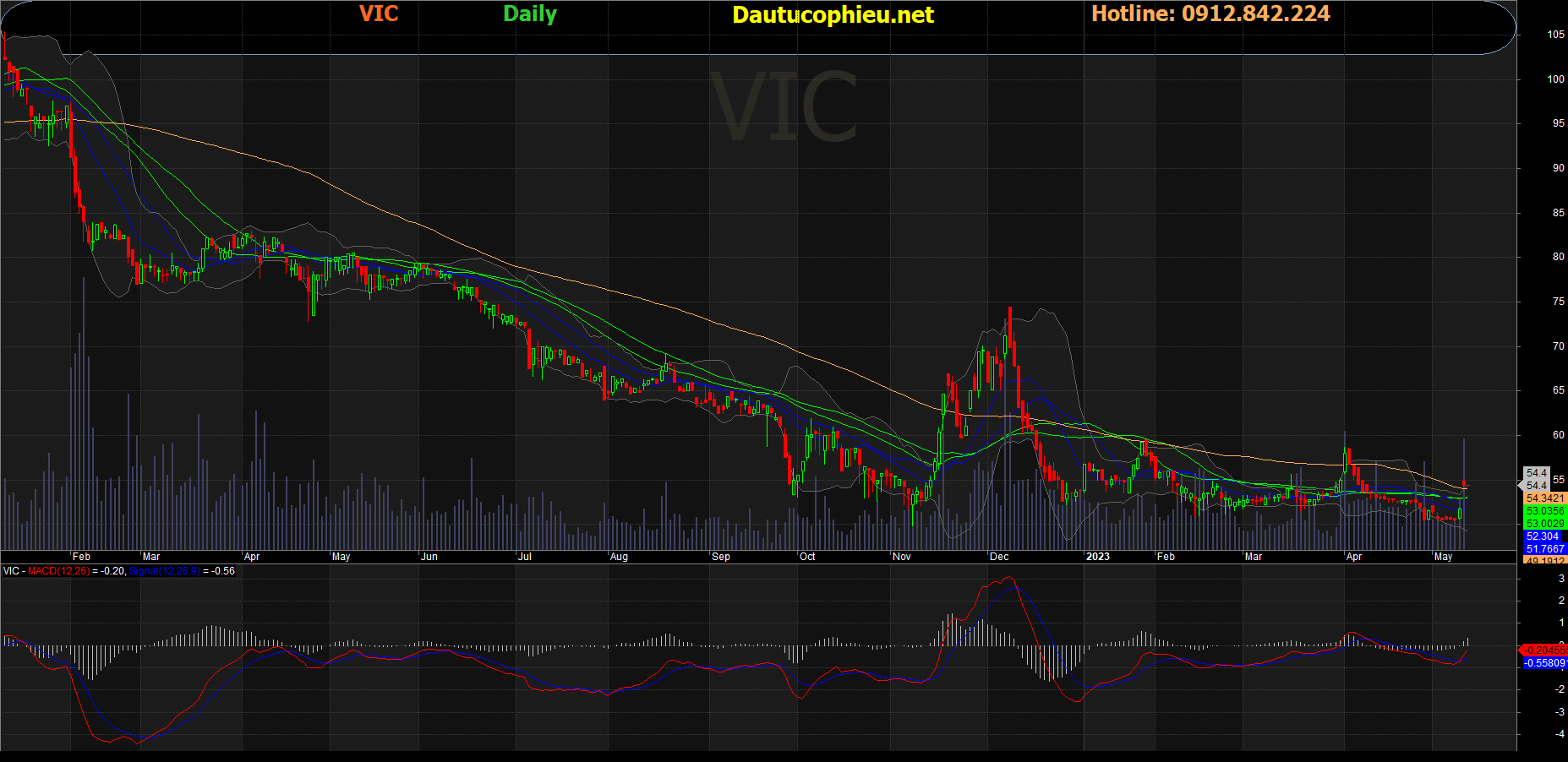 Đồ thị cổ phiếu VIC phiên giao dịch ngày 15/05/2023. Nguồn: AmiBroker