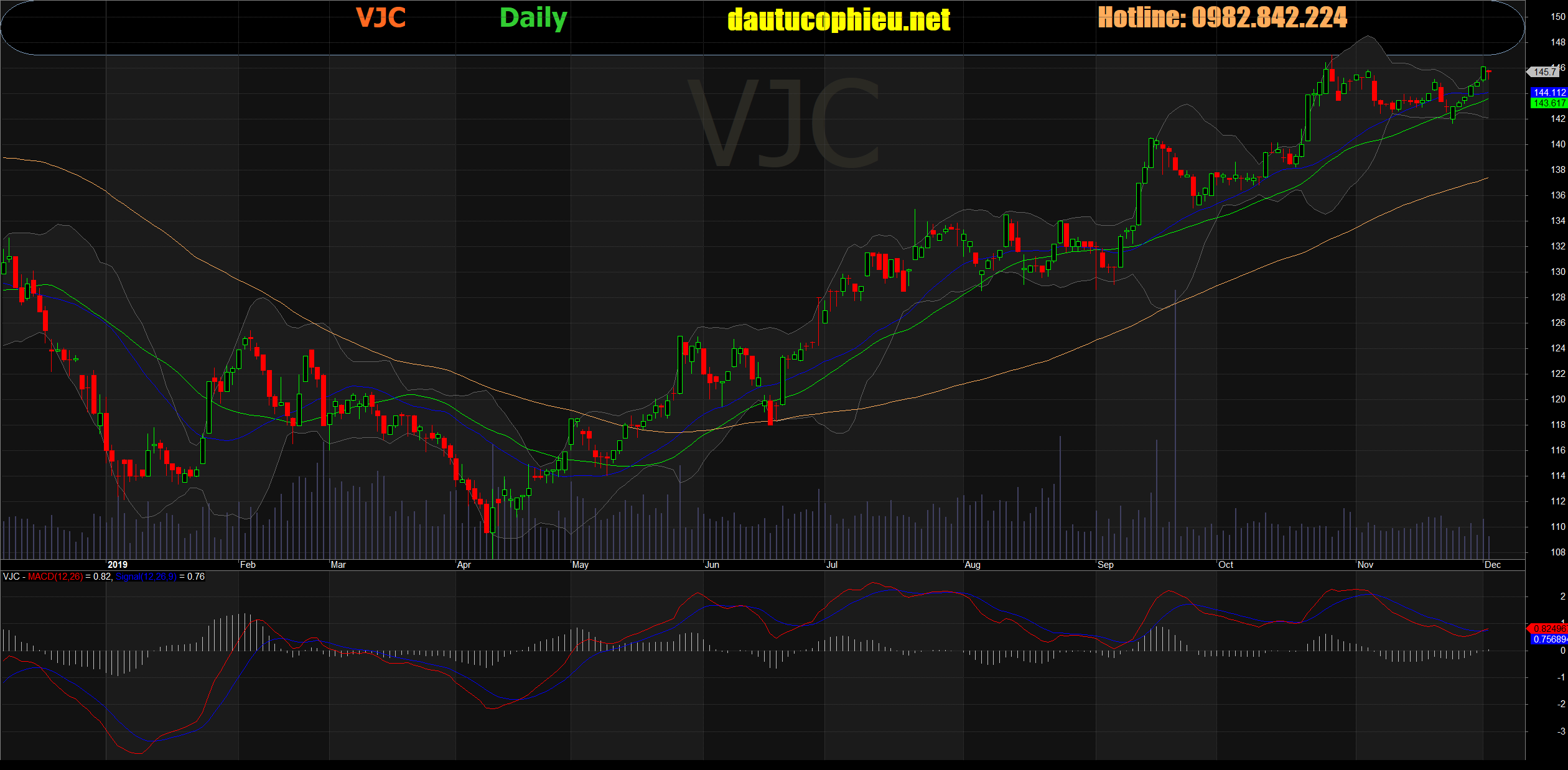 Đồ thị cổ phiếu VJC phiên giao dịch ngày 03/12/2019. Nguồn: AmiBroker