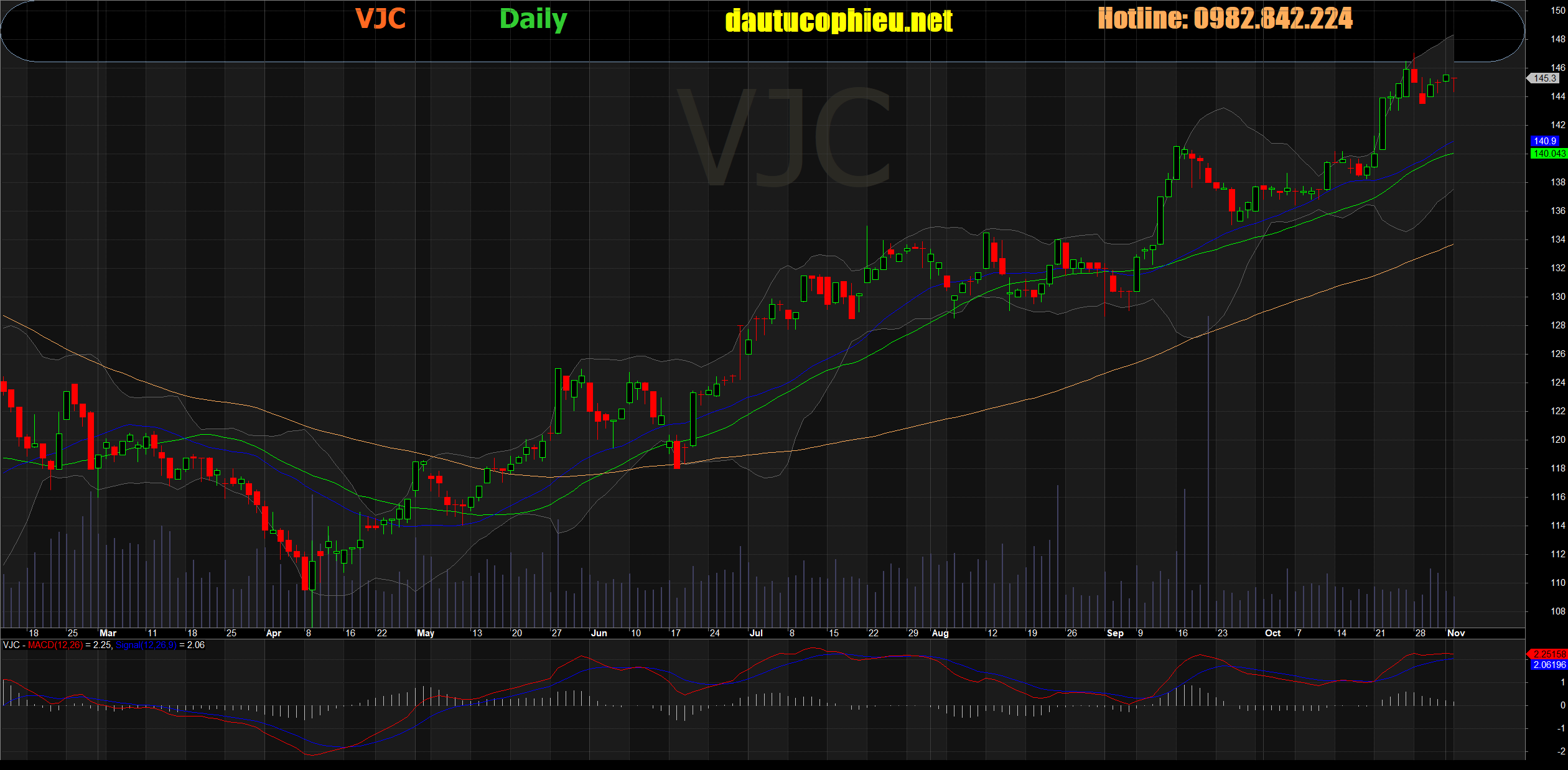 Đồ thị cổ phiếu VJC phiên giao dịch ngày 04/11/2019. Nguồn: AmiBroker.