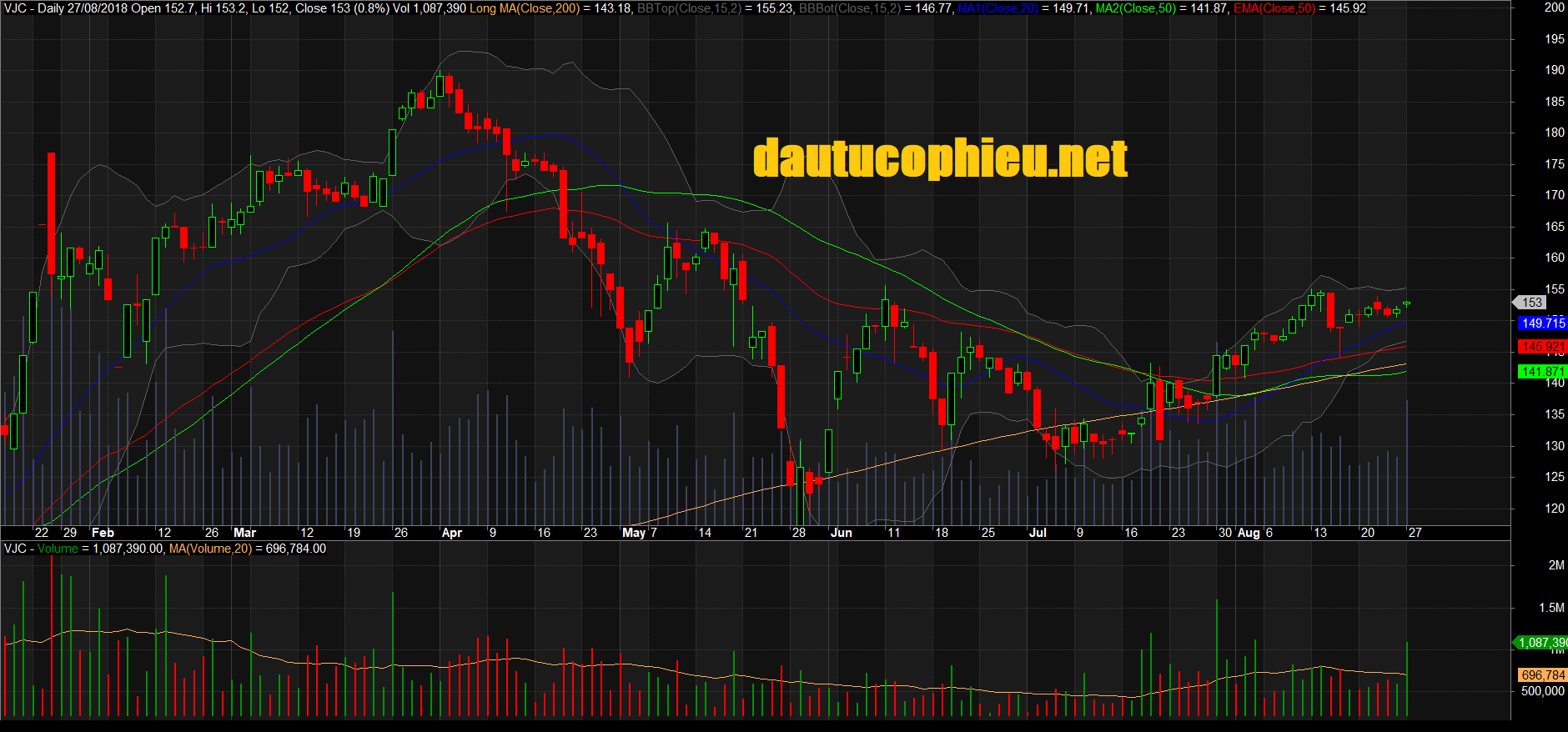 Đồ thị cổ phiếu VJC phiên giao dịch ngày 27/08/2018. Nguồn: AmiBroker