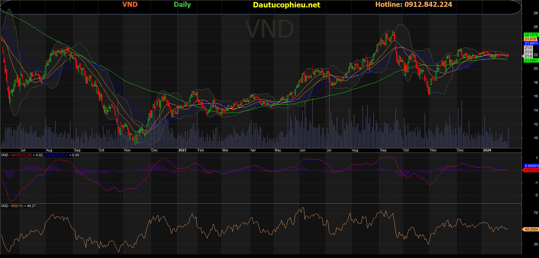 Đồ thị cổ phiếu VND phiên giao dịch ngày 31/01/2024. Nguồn: AmiBroker