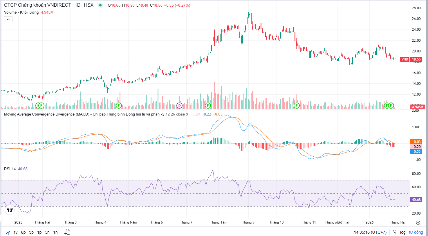 Đồ thị cổ phiếu VND phiên giao dịch ngày 29/01/2026