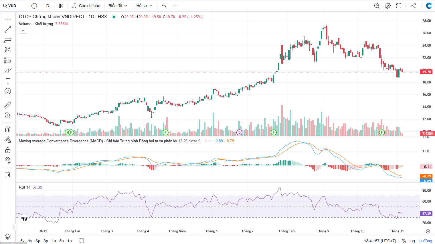 Đồ thị cổ phiếu VND phiên giao dịch ngày 06/11/2025