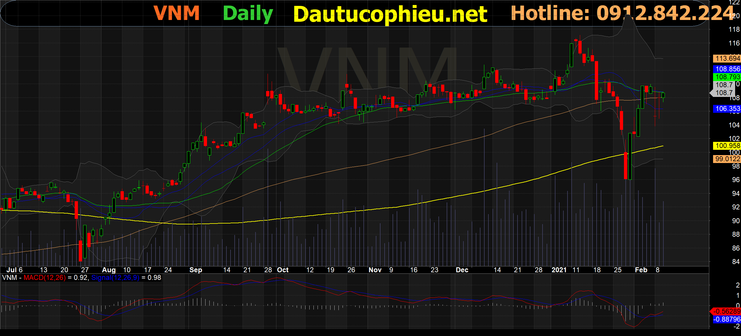 Đồ thị cổ phiếu VNM phiên giao dịch ngày 17/02/2021. Nguồn: AmiBroker