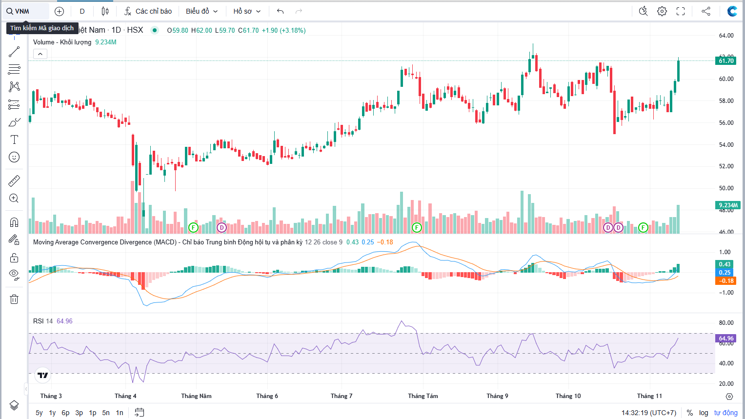 Đồ thị cổ phiếu VNM phiên giao dịch ngày 13/11/2025