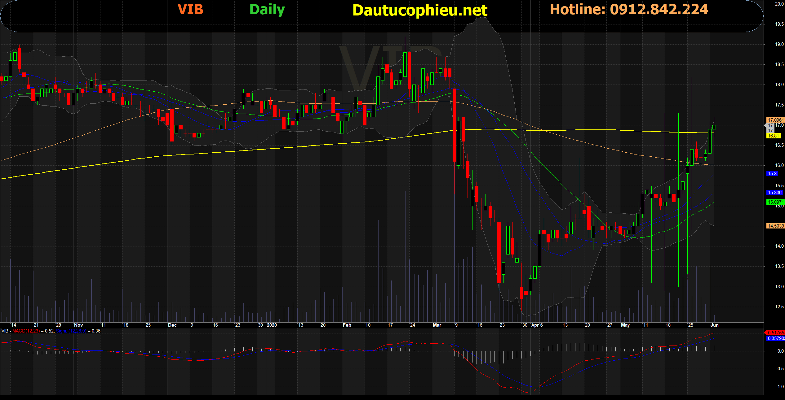 Đồ thị cổ phiếu VIB phiên giao dịch ngày 02/06/2020. Nguồn: AmiBroker