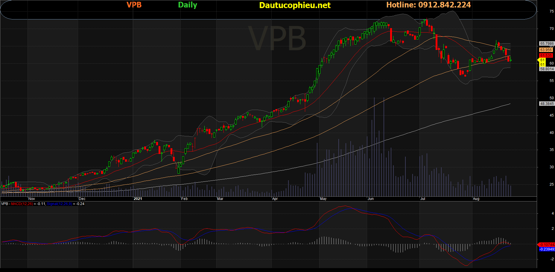 Đồ thị cổ phiếu VPB phiên giao dịch ngày 24/08/2021. Nguồn: AmiBroker