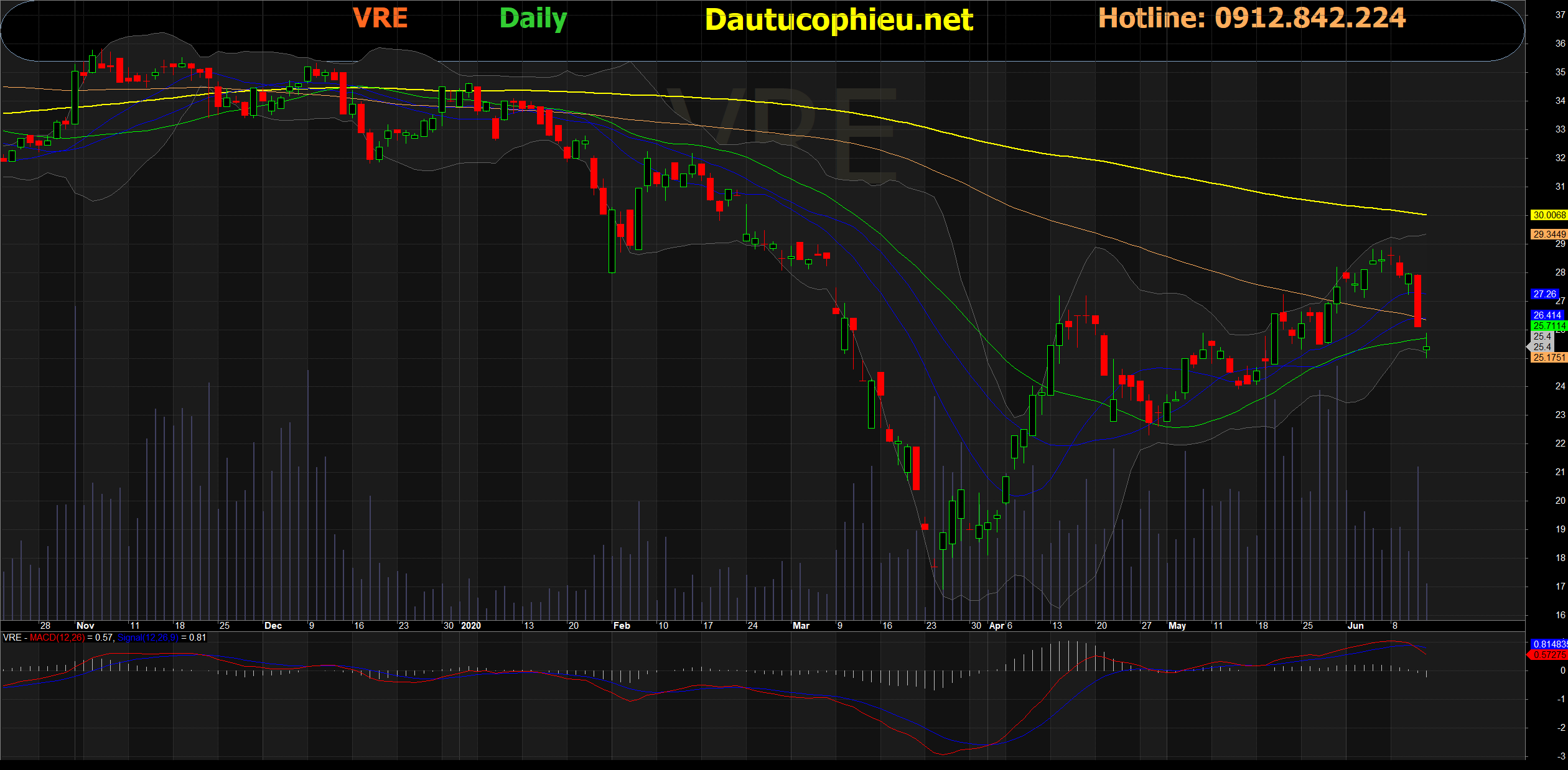Đồ thị cổ phiếu VRE phiên giao dịch ngày 12/06/2020. Nguồn: AmiBroker