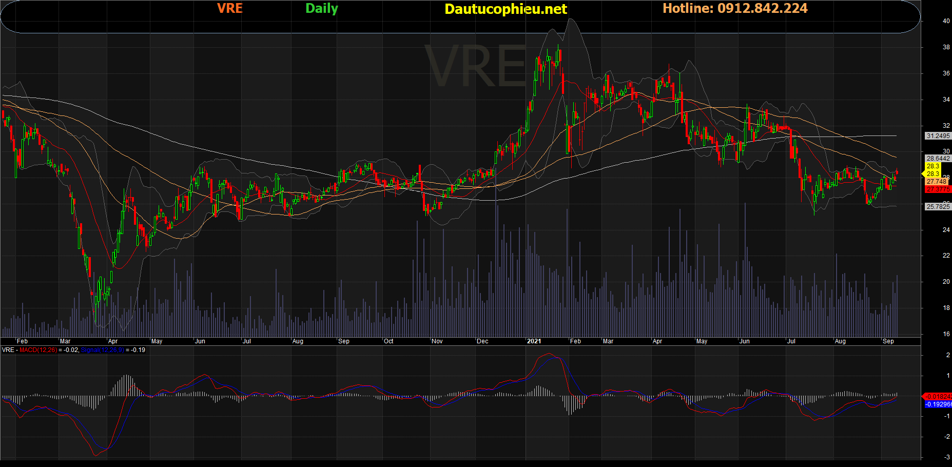 Đồ thị cổ phiếu VRE phiên giao dịch ngày 14/09/2021. Nguồn: AmiBroker