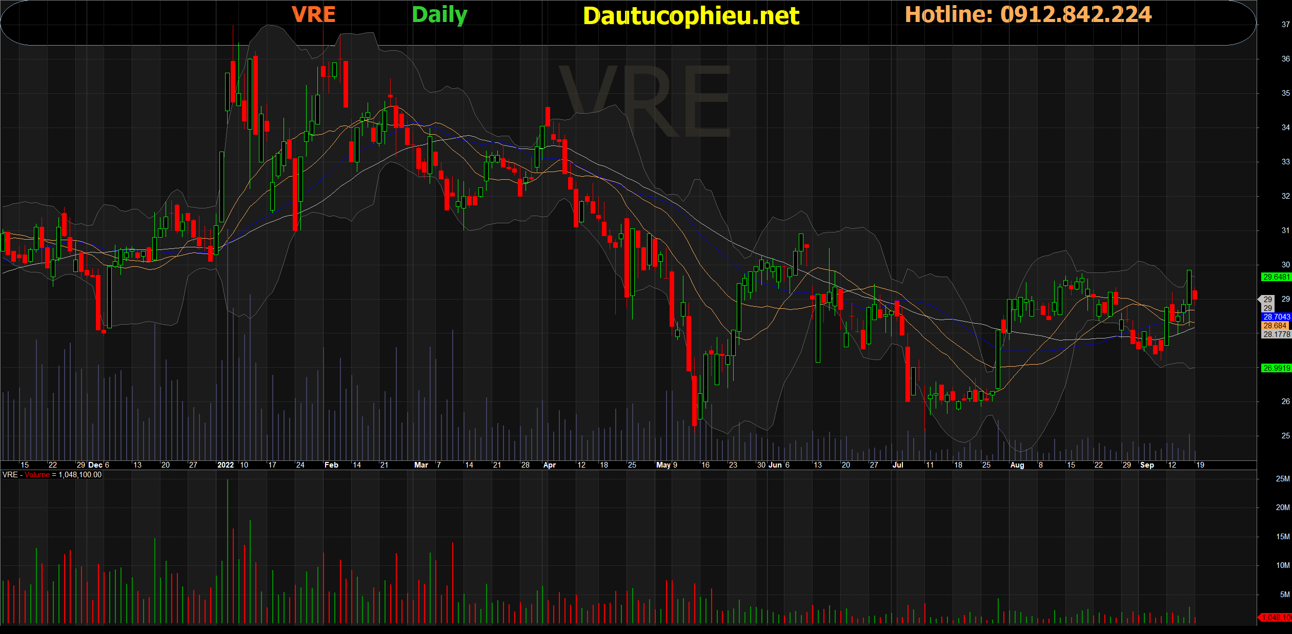 Đồ thị cổ phiếu VRE phiên giao dịch ngày 19/09/2022. Nguồn: AmiBroker
