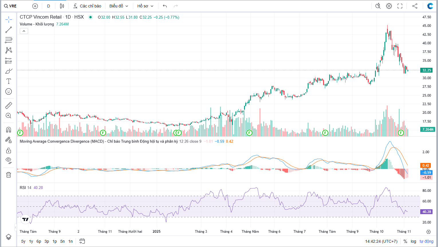 Đồ thị cổ phiếu VRE phiên giao dịch ngày 06/11/2025